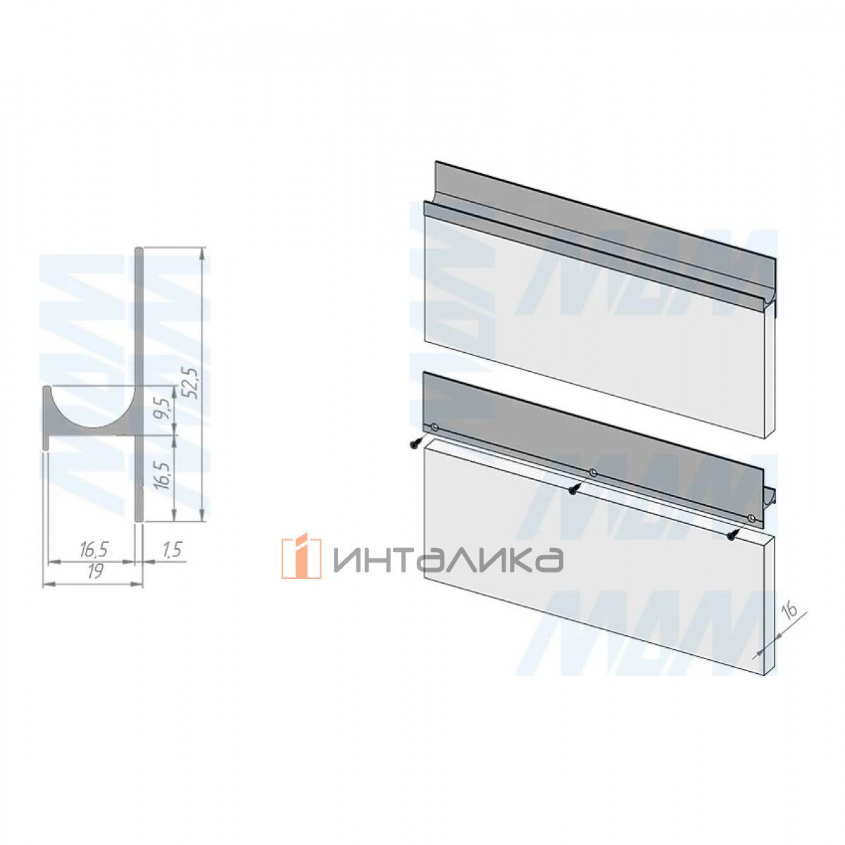 Профиль-ручка крепление саморезами для фасада 16мм, алюминий матовый (анод), L-3000мм, PH.RU24.3000.AL PR