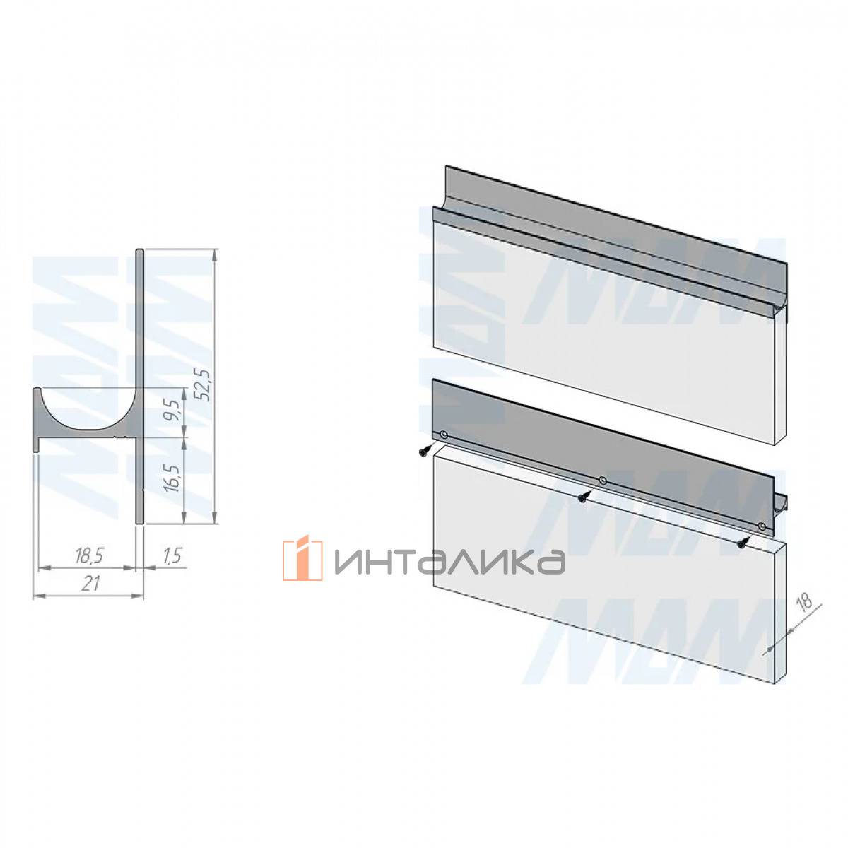 Профиль-ручка крепление саморезами для фасада 18мм, черный матовый (анод), L-3000мм, PH.RU25.3000.7W PR