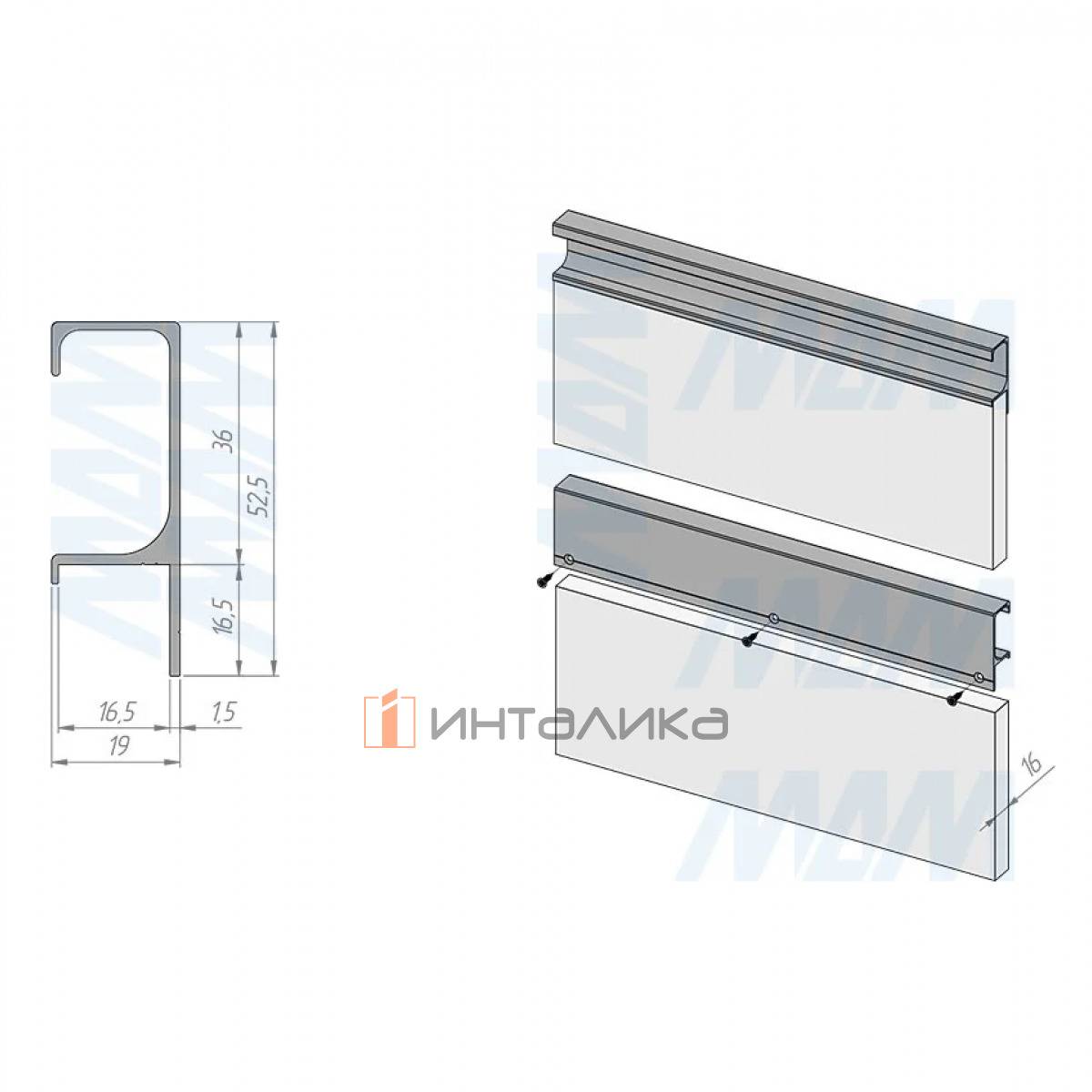 Профиль-ручка крепление саморезами для фасада 16мм, алюминий матовый (анод), L-3000мм, PH.RU26.3000.AL PR