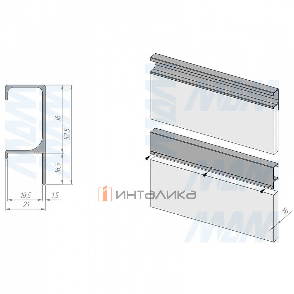 Профиль-ручка крепление саморезами для фасада 18мм, графит (краска), L-3000мм, PH.RU27.3000.9712 PR