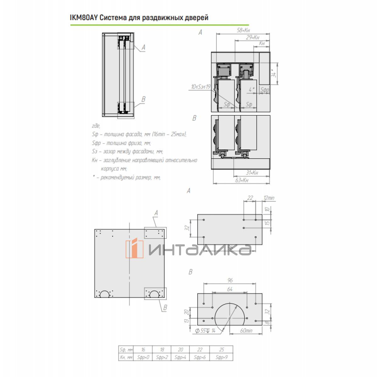 Набор IKM 80AY для 2 дверей, нижняя двойная направляющая, L3000, T16-36, G80, 2IKM80AYDN3