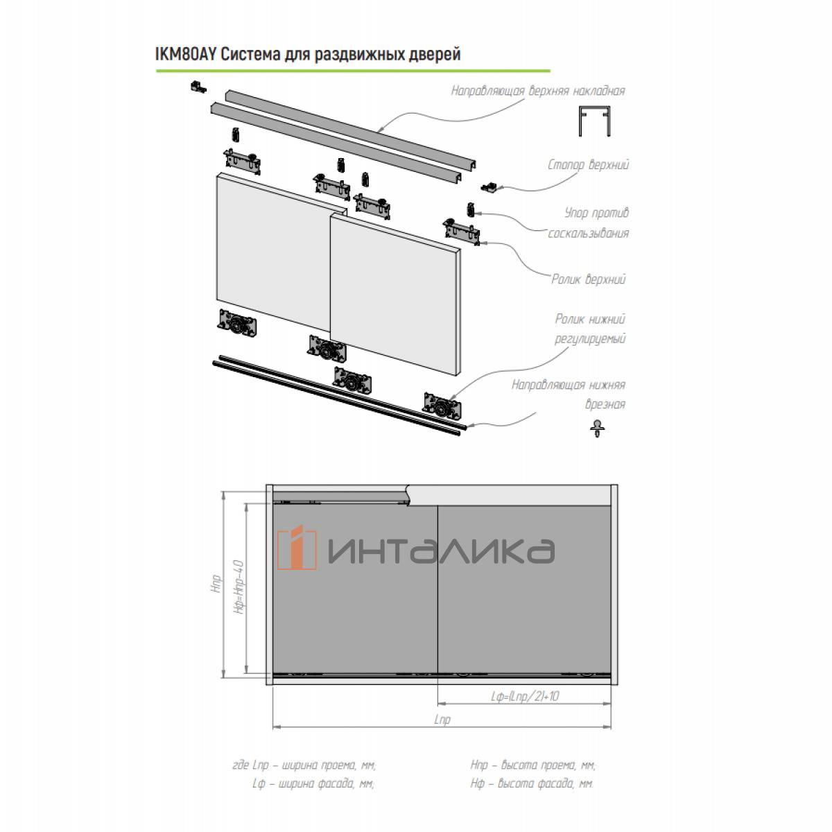 Набор IKM 80AY для 2 дверей, нижняя забивная направляющая, L3000, T16-36, G80, 2IKM80AYZN3