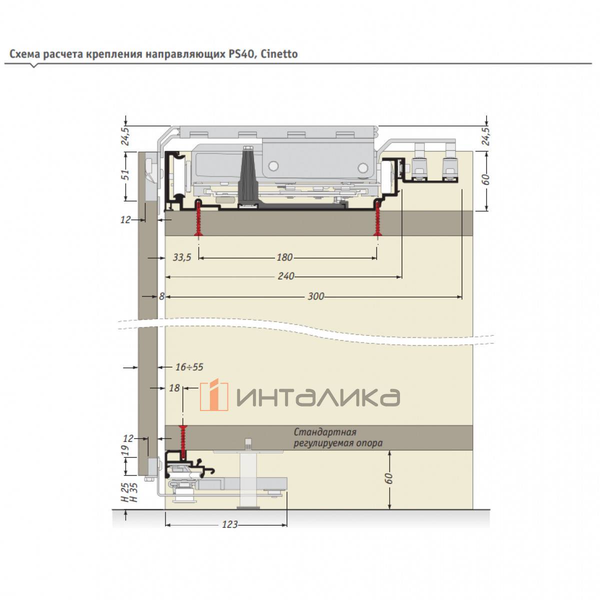 Система PS40 не требует предустановки направляющих на производстве и легко монтируется на шкаф на этапе сборки мебели у клиента, а возможность крепить направляющие под цоколем, не переворачивая корпус, безусловно, оценит каждый монтажник