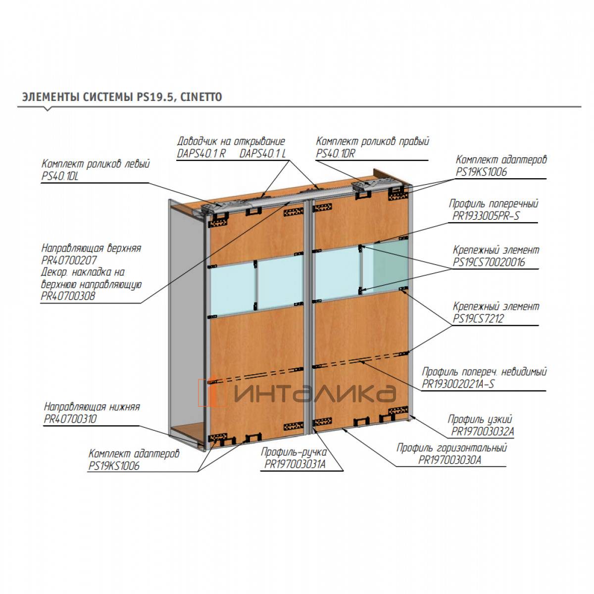 Двери шкафа-купе, собранного с использованием системы PS40, в закрытом состоянии находятся в одной плоскости