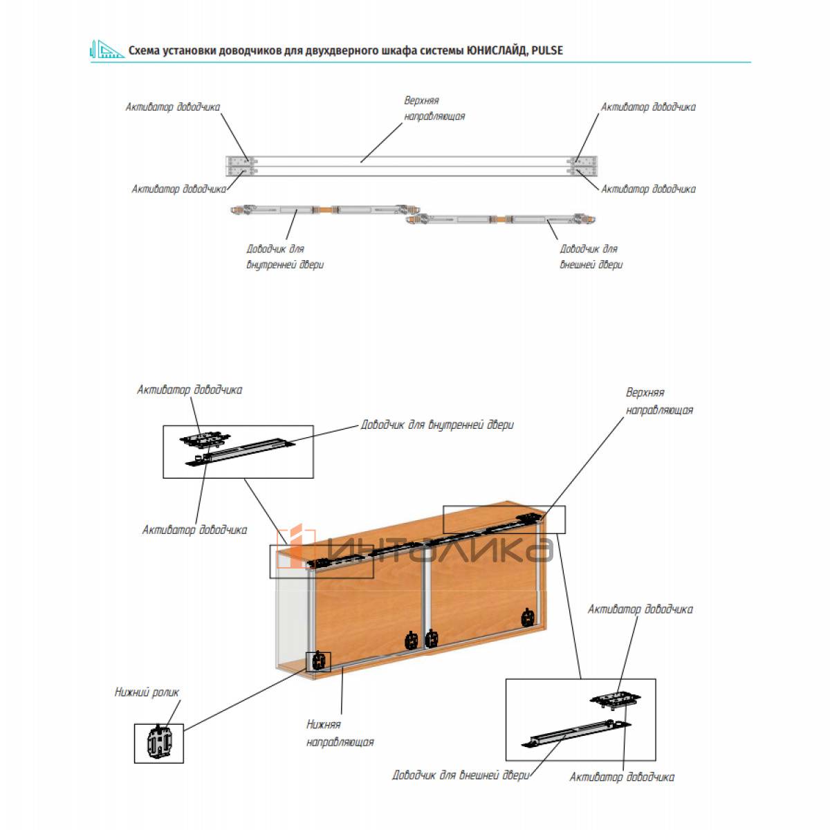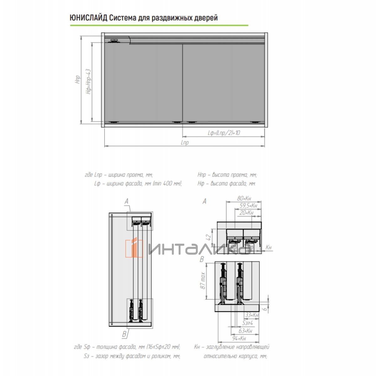 Система ЮНИСЛАЙД представляет собой комплексное решение для шкафов-купе с дверьми без алюминиевых профилей