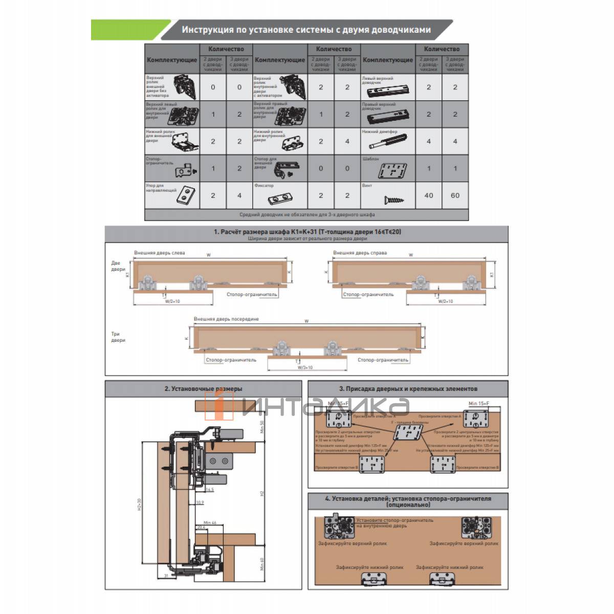 ONE Комплект роликов и доводчиков на 3 двери (ONE3D)