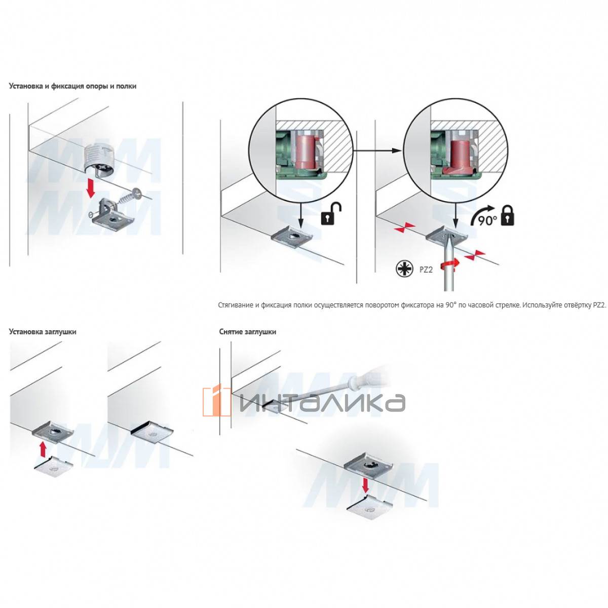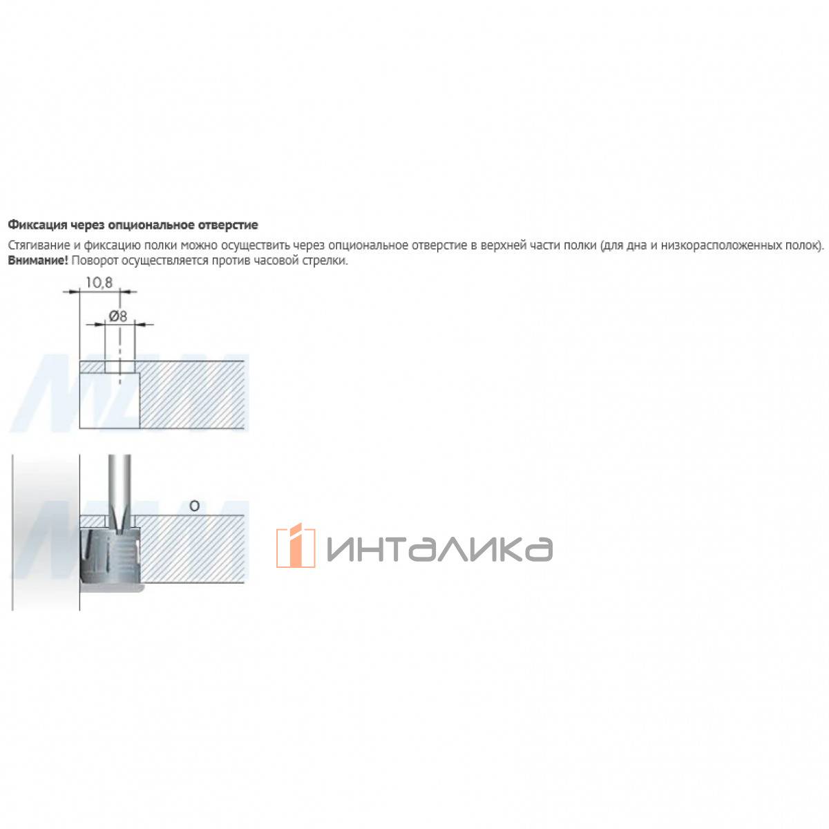 • опциональное сквозное отверстие ∅8 мм позволяет зафиксировать нижнюю полку сверху