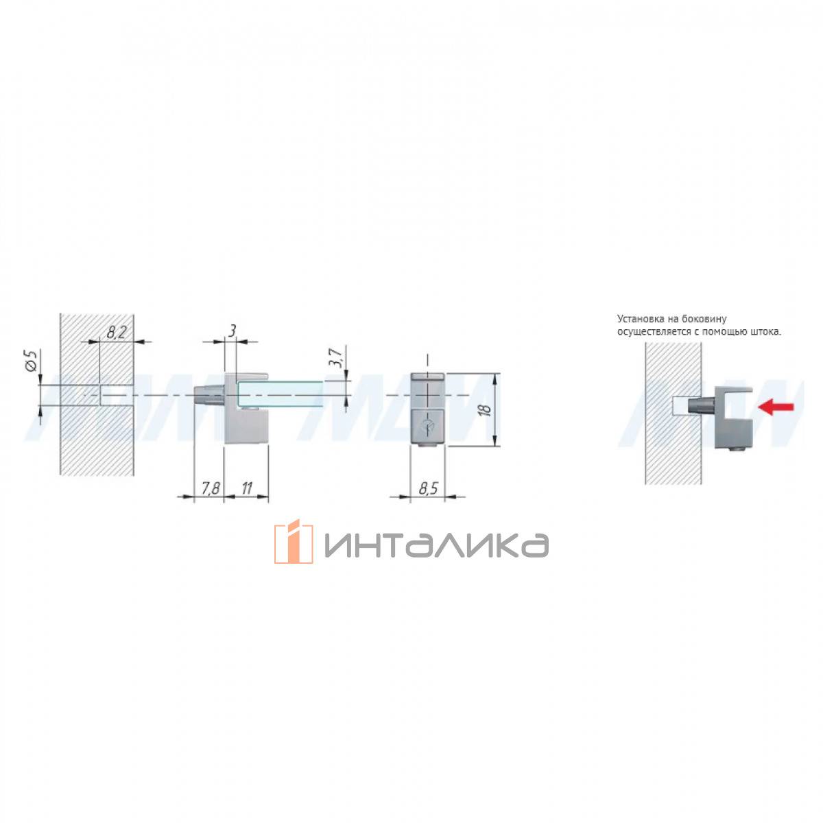 GRACE Полкодержатель для стеклянных полок толщиной 5-6 мм, со штоком, никель, 1 61200 30 YA
