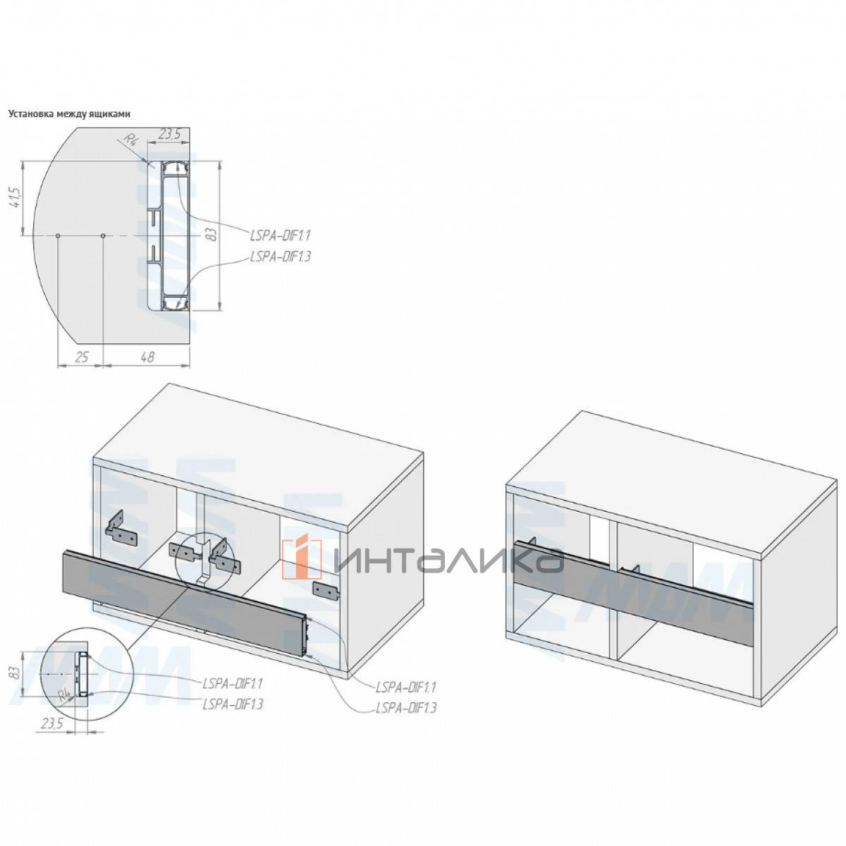 • горизонтальная установка для верхнего ящика нижнего яруса, горизонтальная установка для среднего ящика нижнего яруса, вертикальная установка для колонн;
