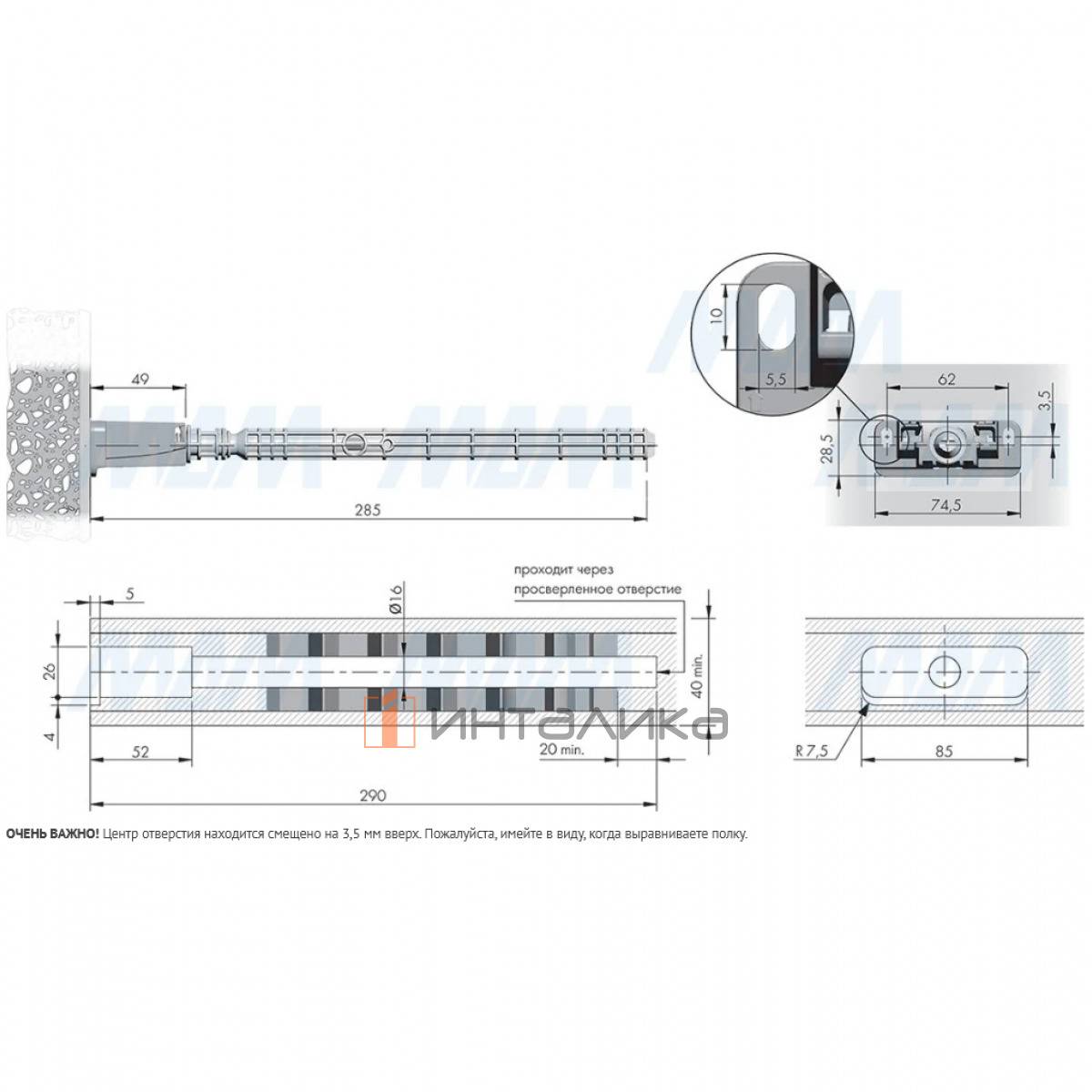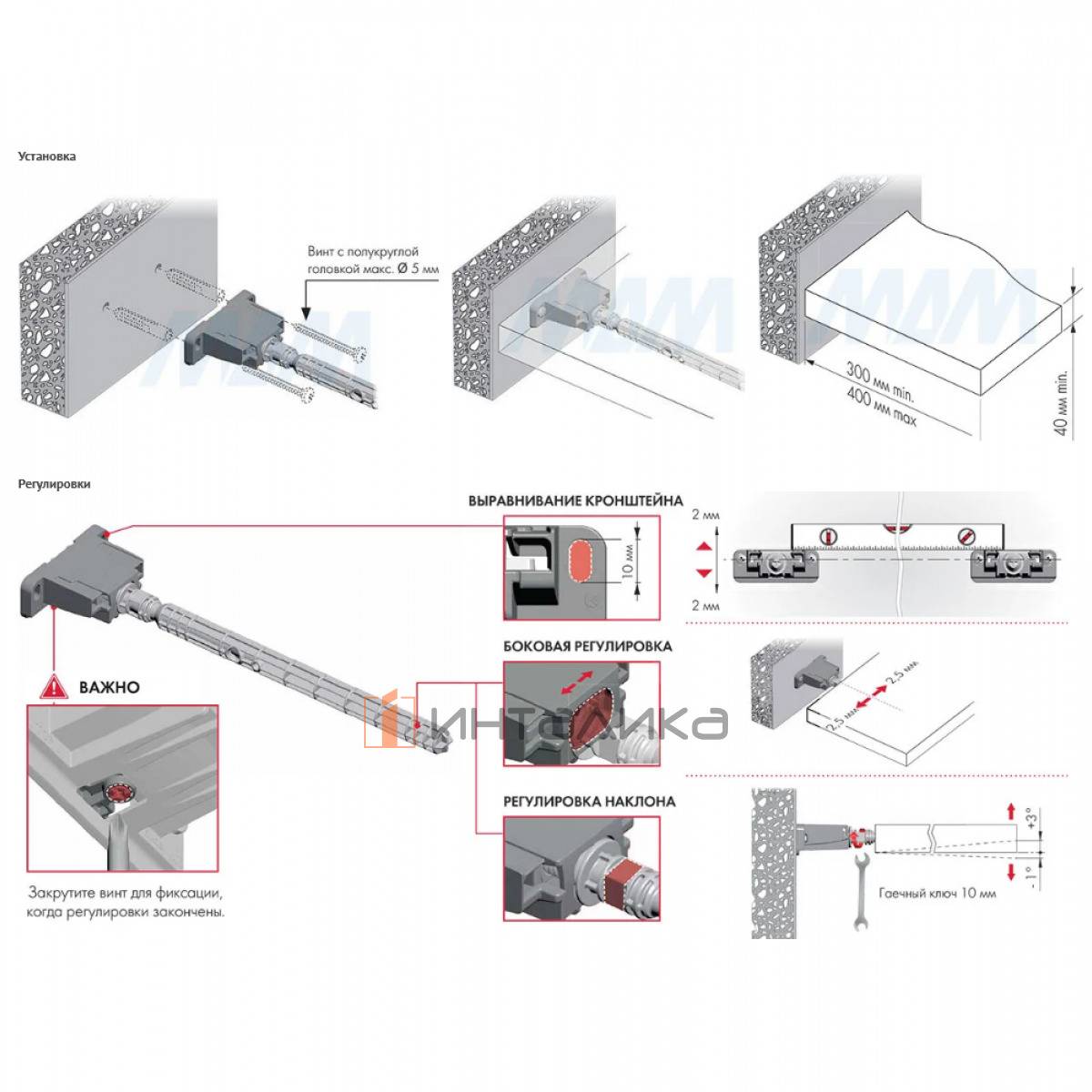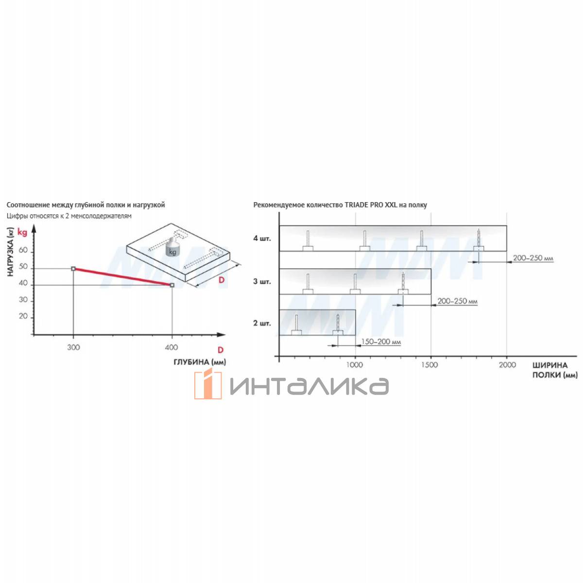 ОЧЕНЬ ВАЖНО! Нагрузка на менсолодержатель прямо пропорциональна глубине полки (см. график соотношения нагрузки и глубины полки).