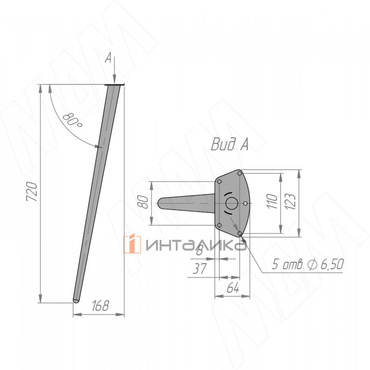 CONE опора для стола конусная, 123х720 мм, черный матовый, CON123x720 BLC