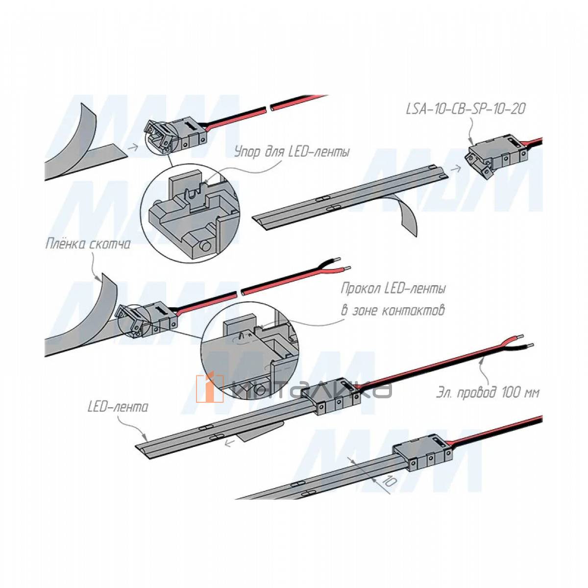 Применение: коннектор позволяет подключать к блоку питания светодиодную ленту SMD или COB шириной 10 мм