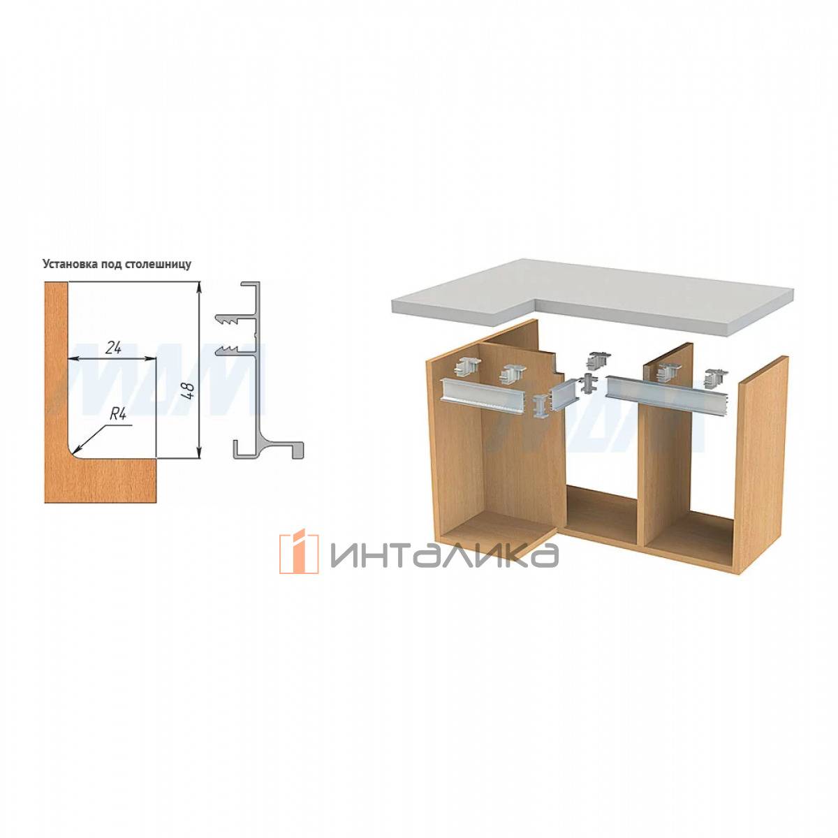 Примечание: горизонтальная установка под столешницу в корпусах нижнего яруса и вертикальная установка для колонн (используется с плитами 18 мм, для установки с плитой 16 мм используется проставка GL.6272.0000.00)