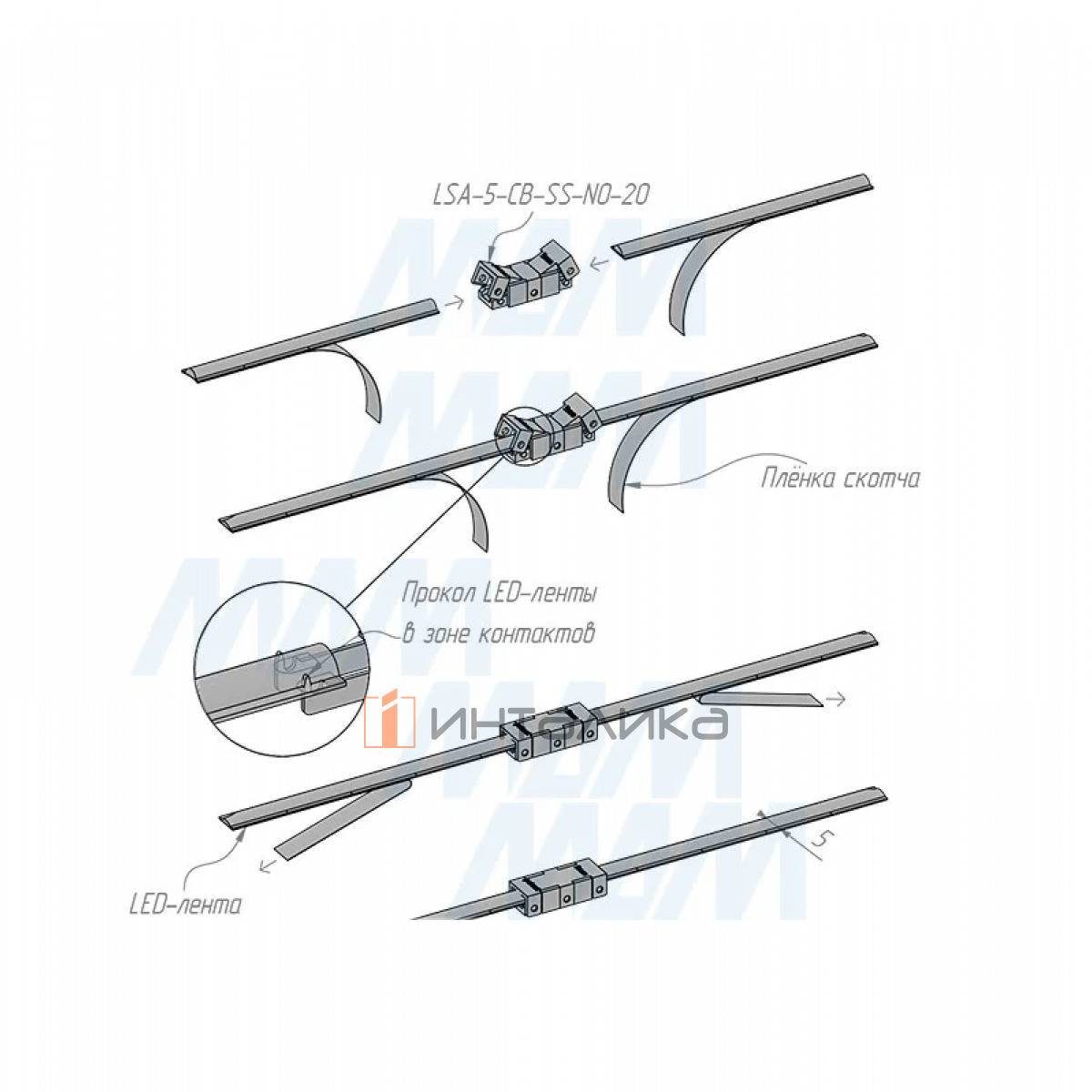 Коннектор для ленты COB и SMD, 5 мм, стык в стык, IP20, LSA-5-CB-SS-NO-20