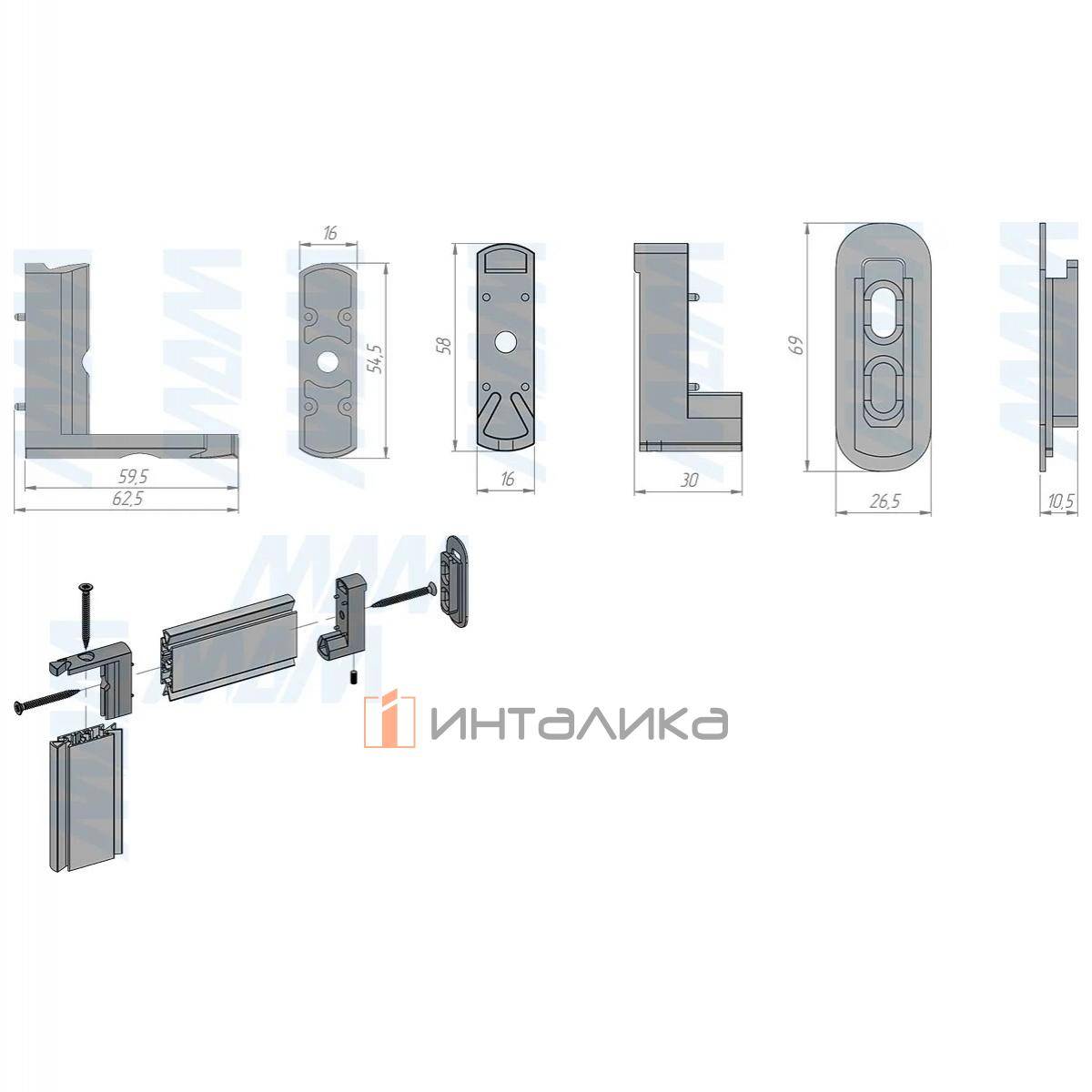 Комплектация: угловой соединитель, крепление к стене, саморез - 3 шт.