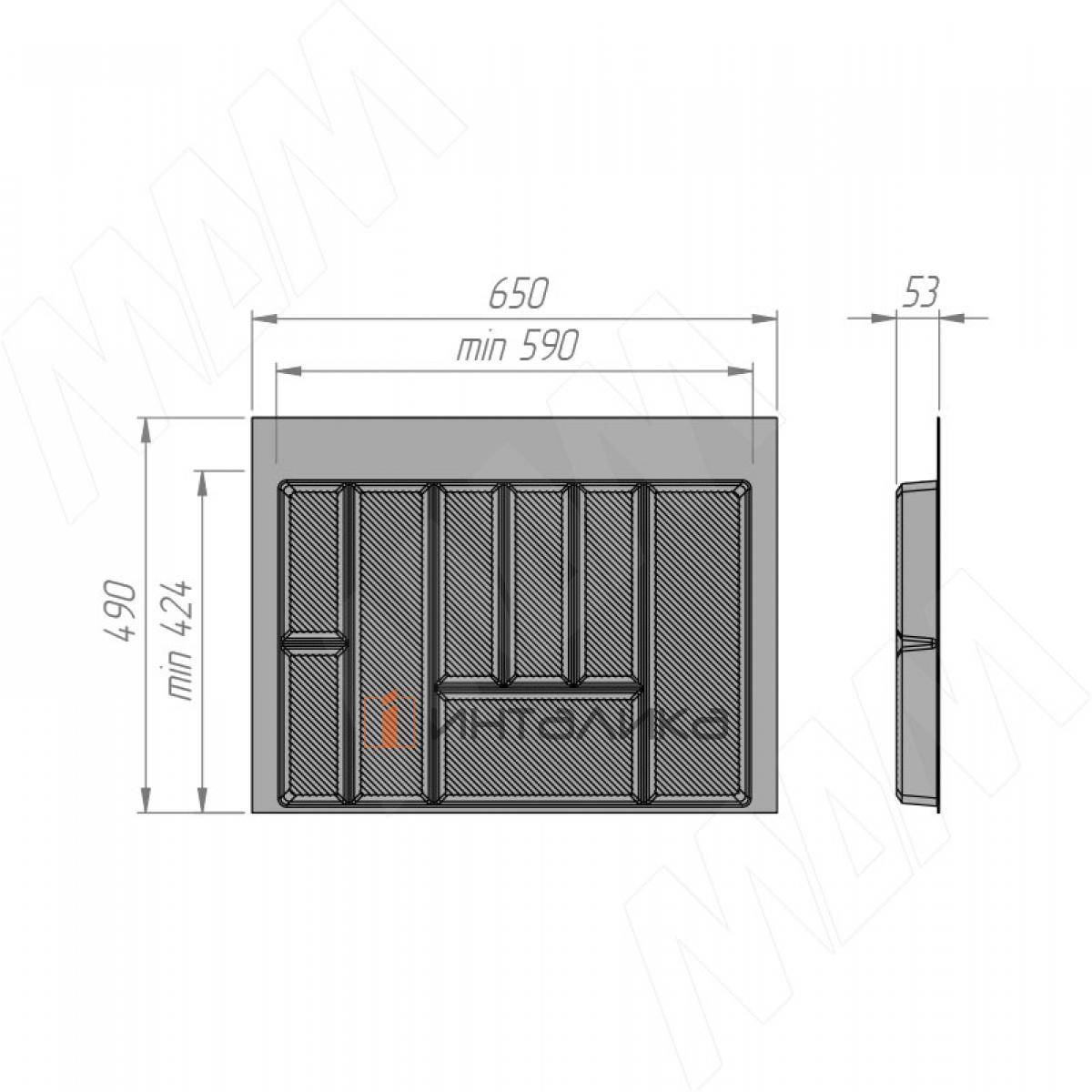 Применение: хранение столовых приборов и кухонных аксессуаров, устанавливается в выдвижной ящик