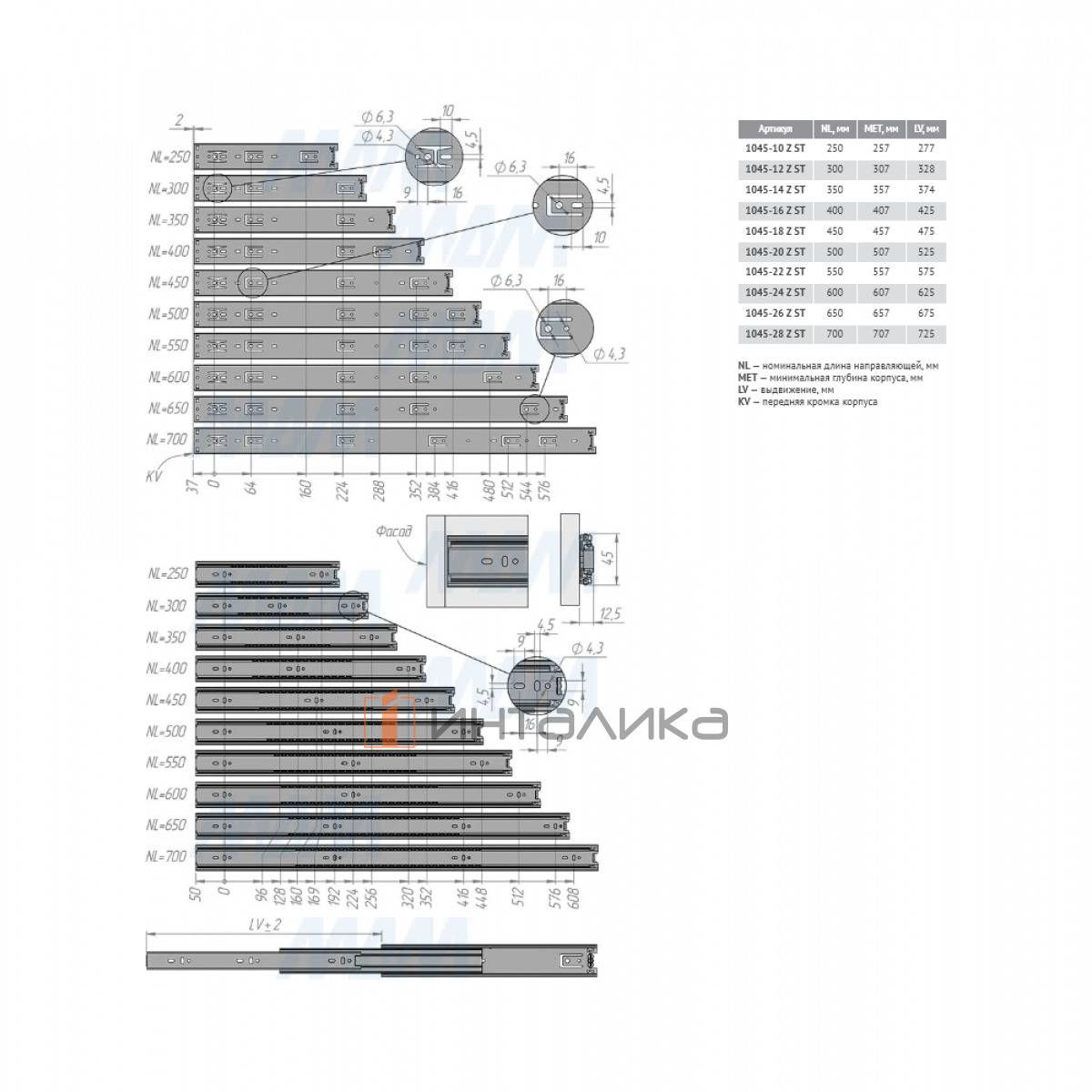 VEKTOR BS45 STANDARD направляющие 400 мм, шариковые, h45, полн. выдвижения, черные, 1045-16 Z ST BL