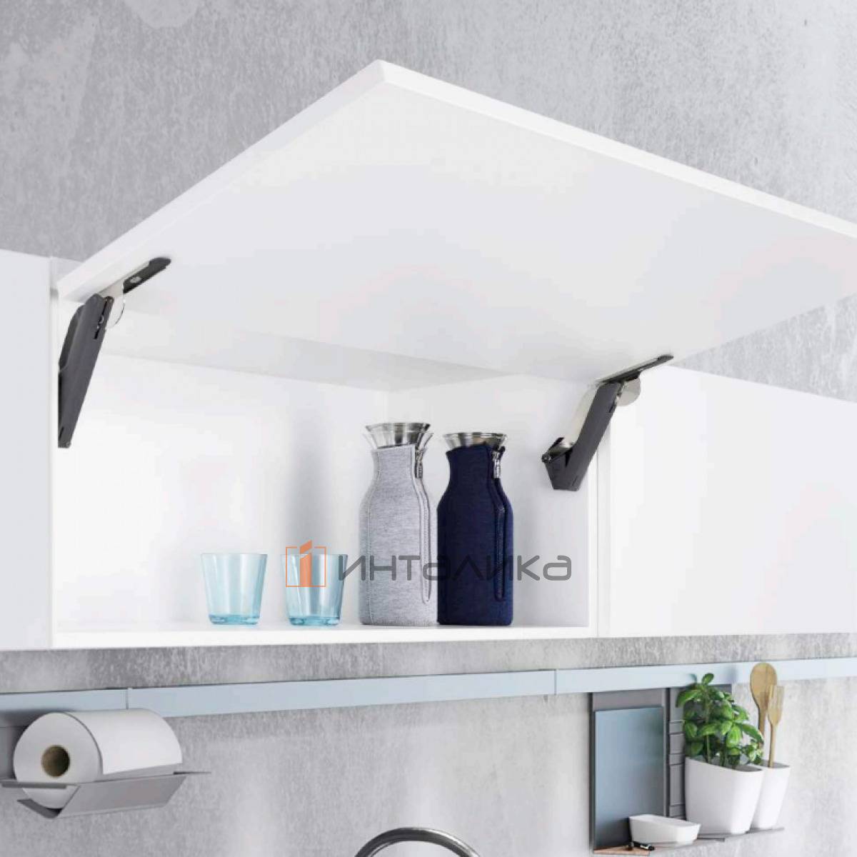 Подъемник Free Space Puch to Open удобно открывается при нажатии на фасад и надежно фиксирует его в закрытом положении