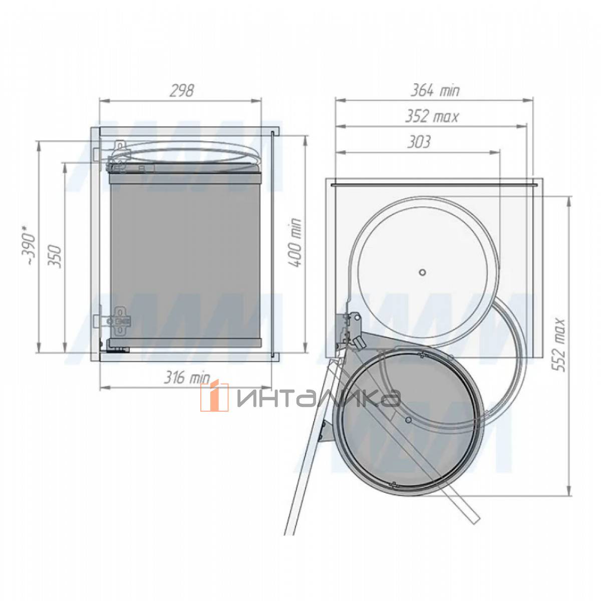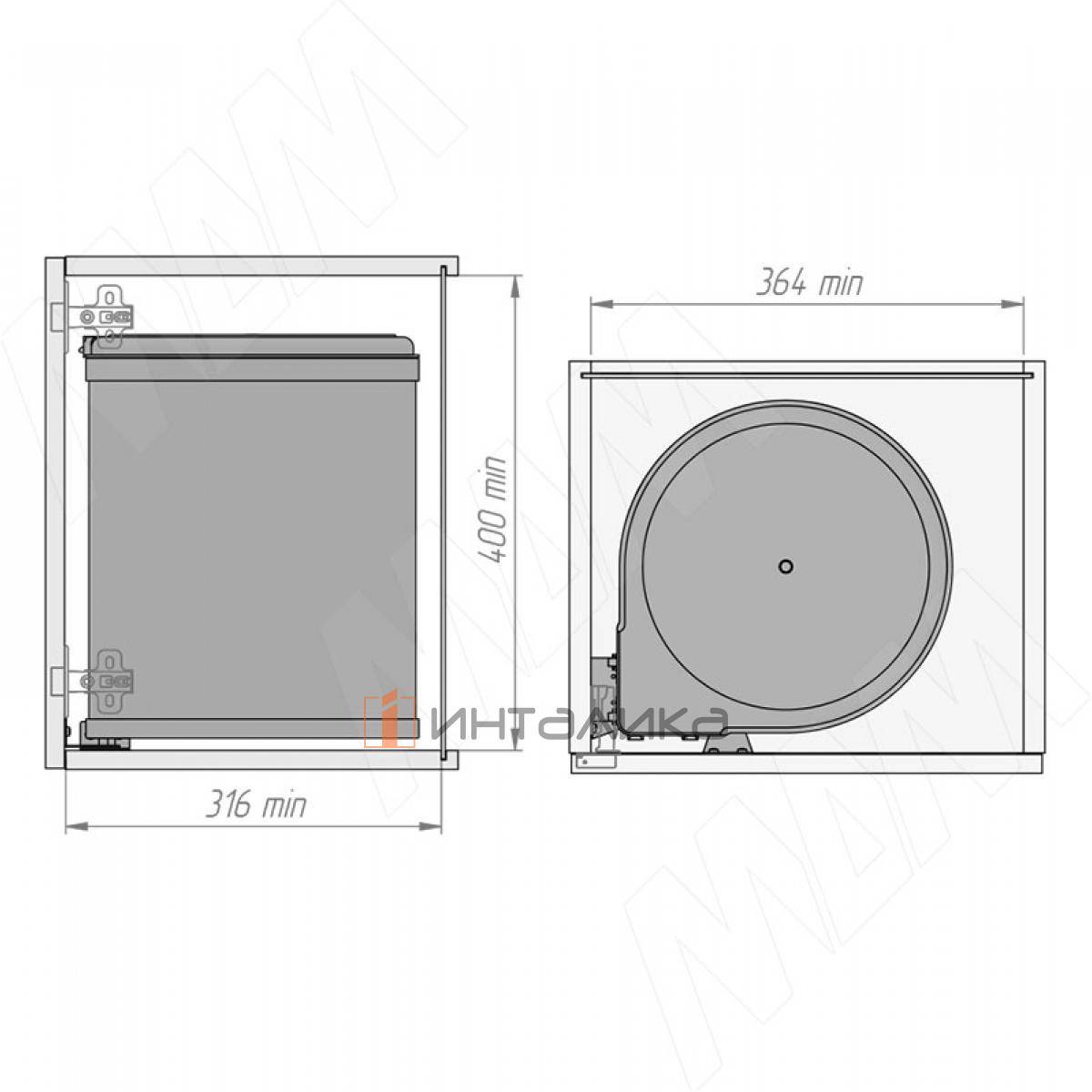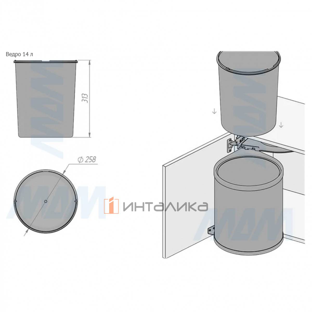 Комплектация: поворотный механизм - 1 компл., корпус с крышкой - 1 шт., ведро 14 л с ручкой - 1 шт., крепёж