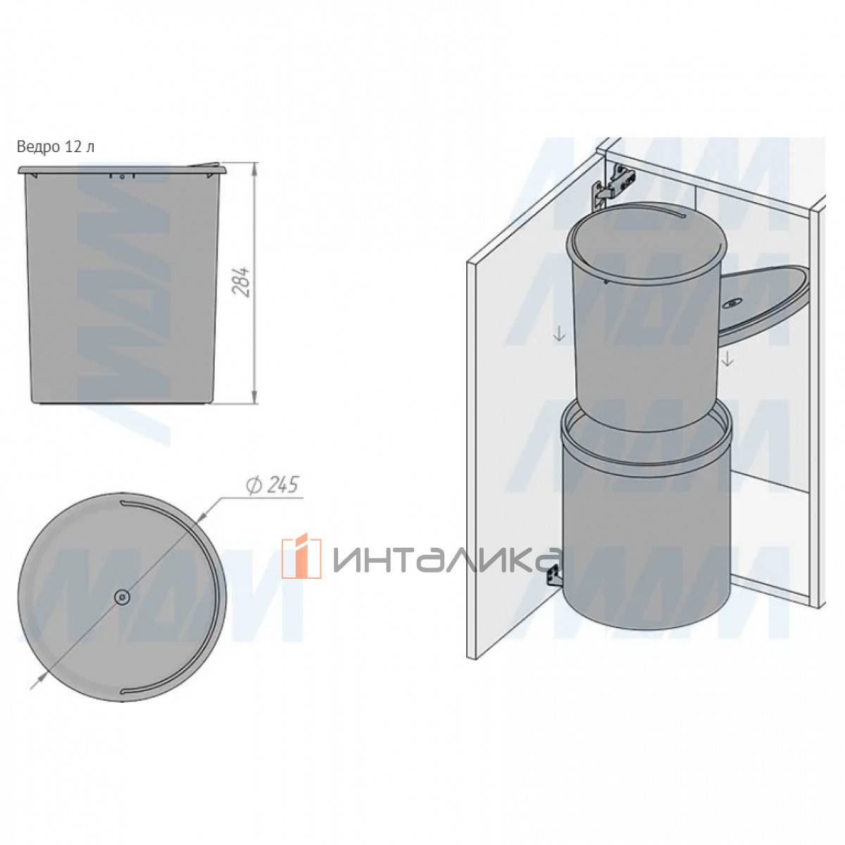 Комплектация: поворотный механизм - 1 компл., корпус с крышкой - 1 шт., ведро 12 л с ручкой - 1 шт., крепёж