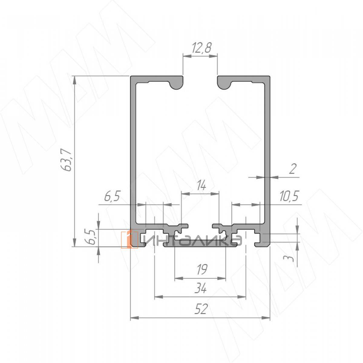 PS65 Направляющая одинарная верхняя, черный, L-2000, PR657003041RUBL-S2