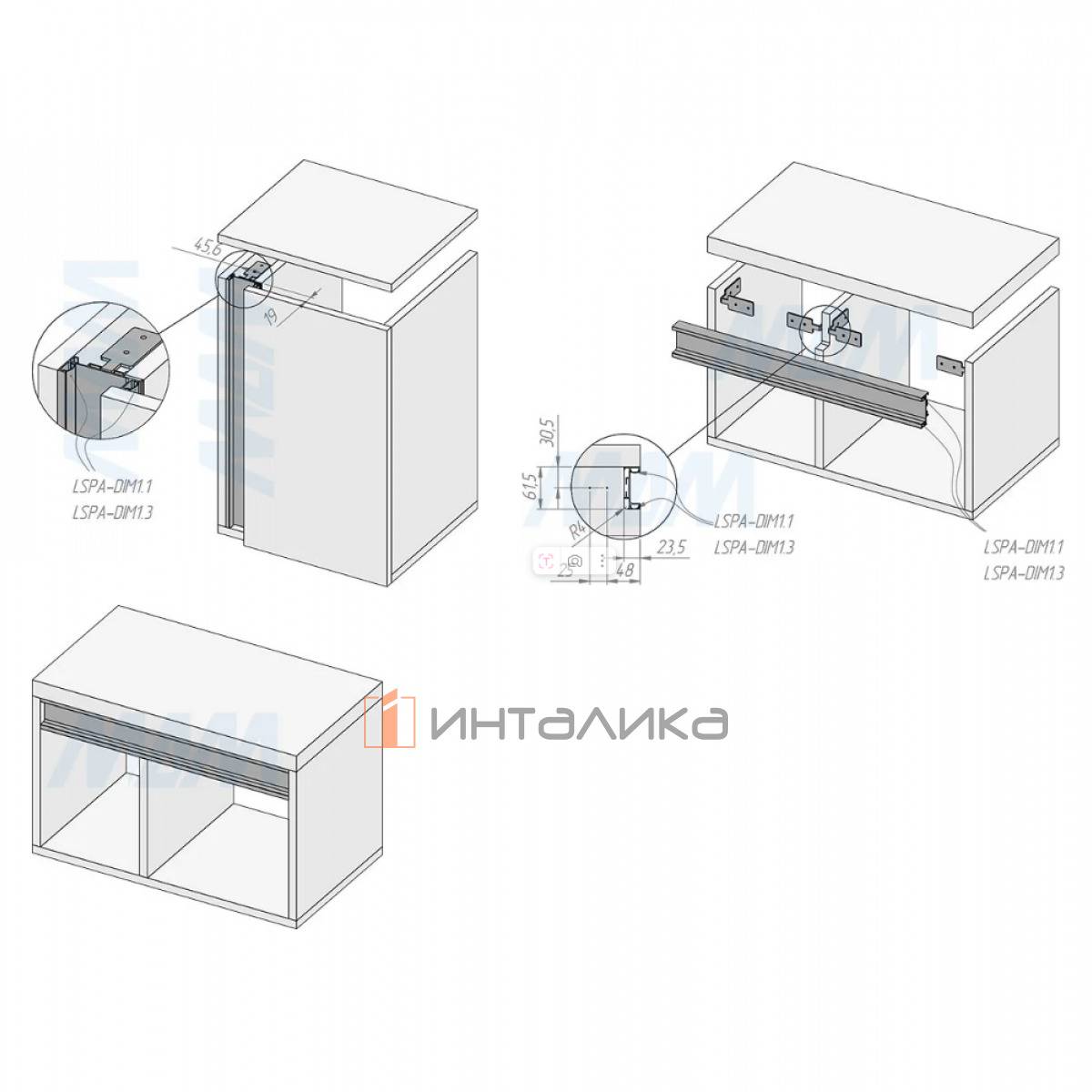 2.2. подсветка внутреннего пространства ящиков или отдельно стоящей колоны при установке светодиодной ленты в нижний паз