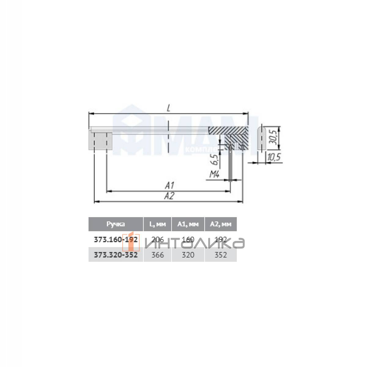 Ручка-рейлинг 320/352мм (L=366мм) никель матовый, 373.320-352.33