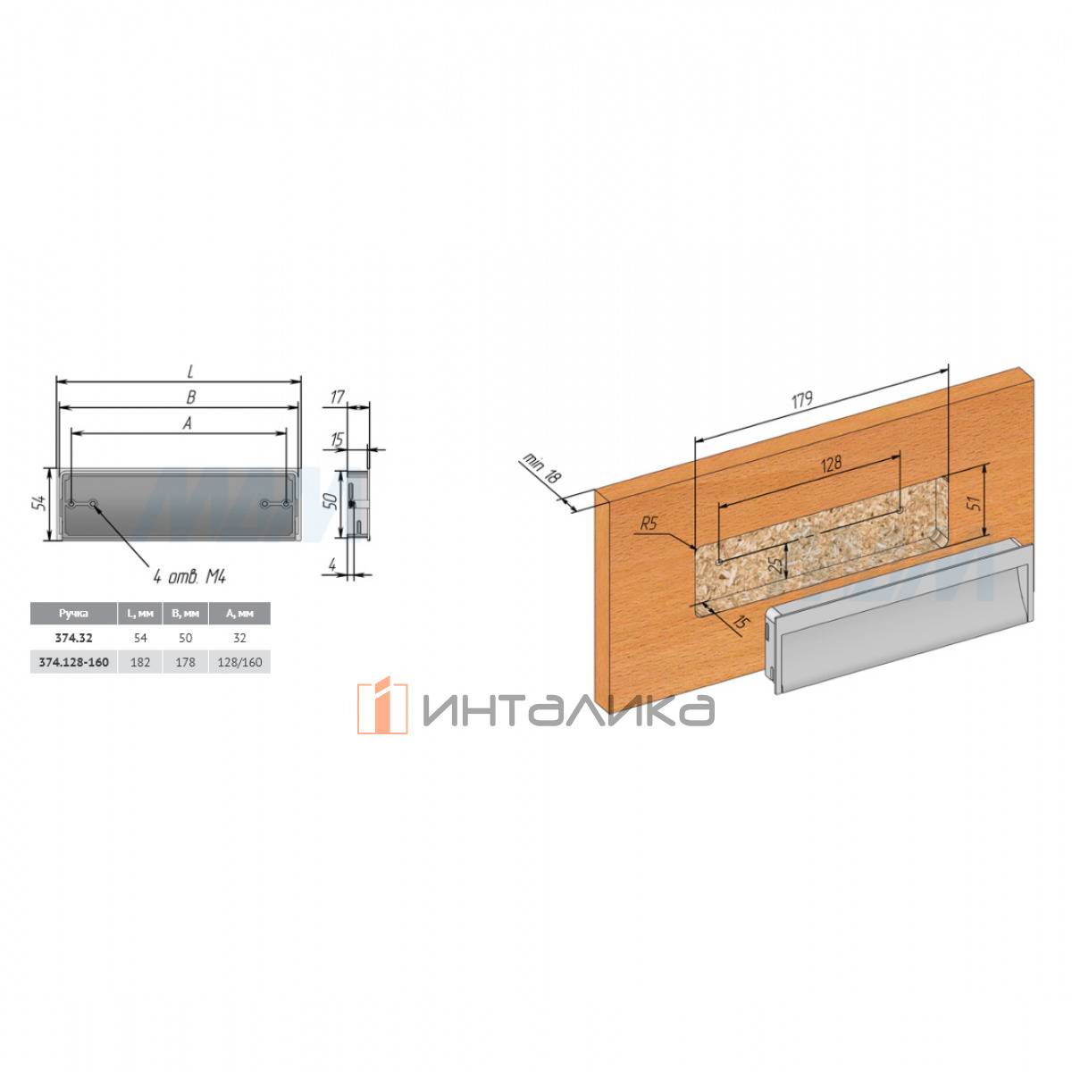 Ручка-раковина 128/160мм никель матовый, 374.128-160.33