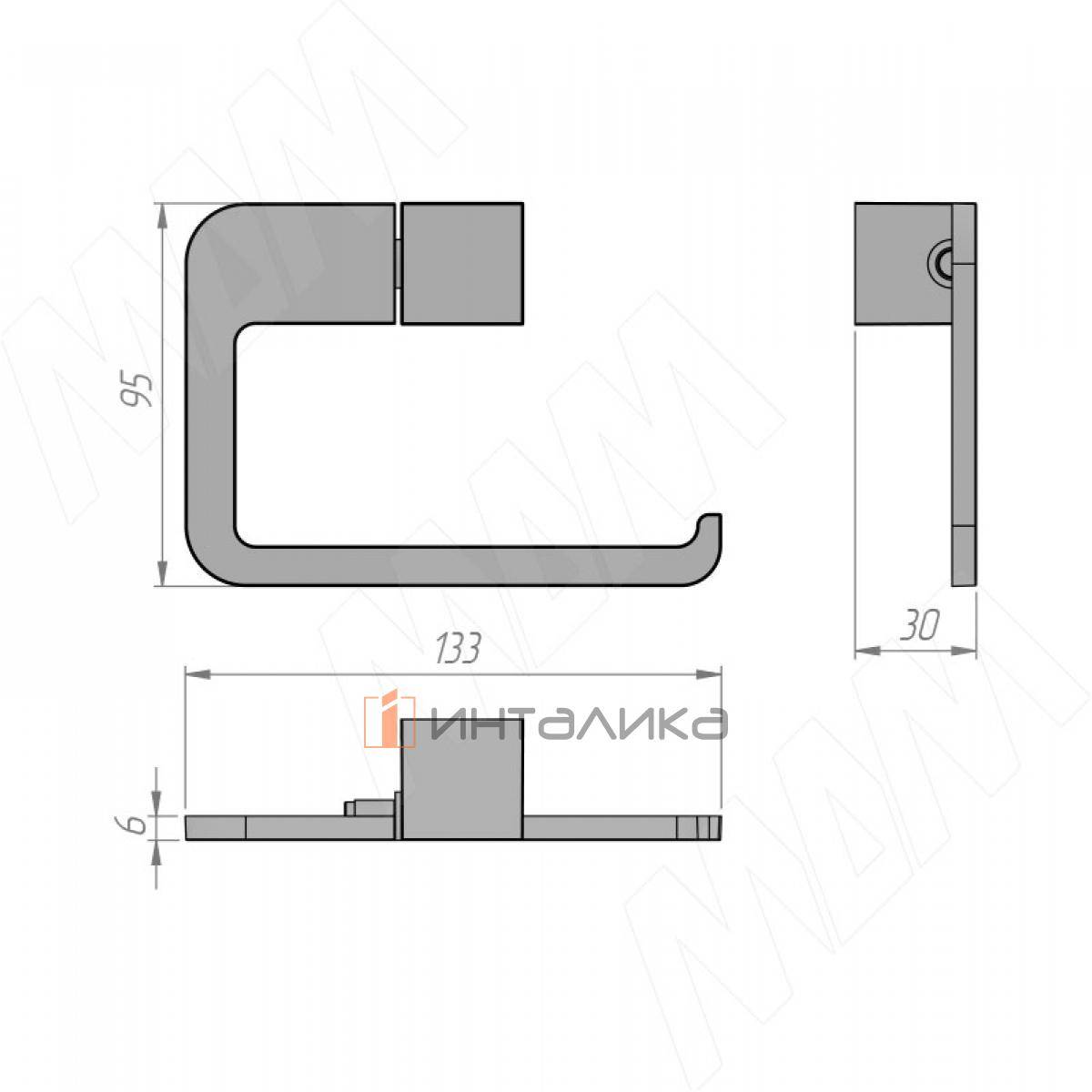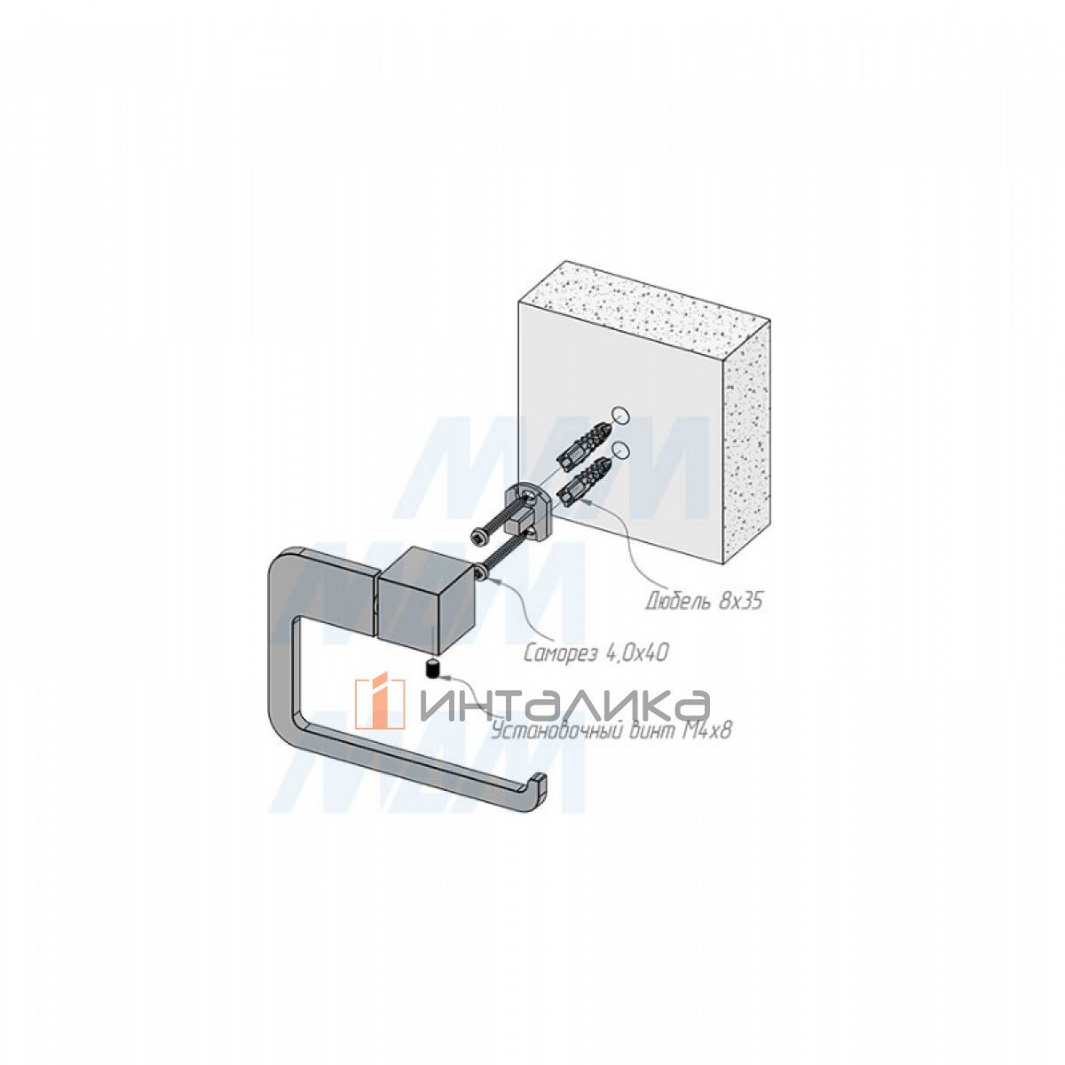 Комплектация: держатель туалетной бумаги с установочной площадкой и крепежом (саморез 4×40 мм - 2 шт., дюбель 8×35 мм - 2 шт., винт установочный М4×8 мм, шестигранник 2 мм)