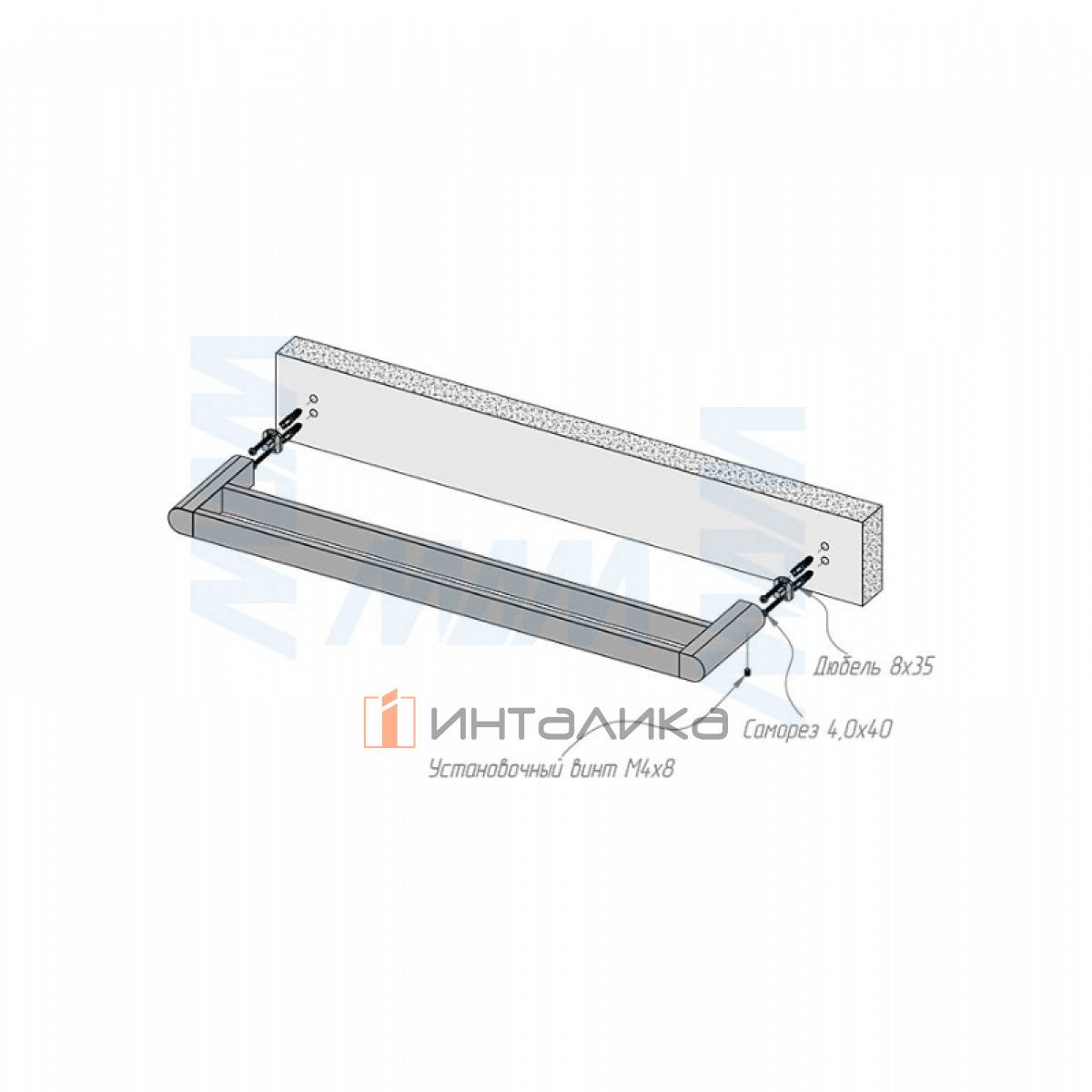 Комплектация: полотенцедержатель с установочными площадками и крепежом (саморез 4×40 мм - 4 шт., дюбель 8×35 мм - 4 шт., винт установочный М4×8 мм - 2 шт., шестигранник 2 мм)