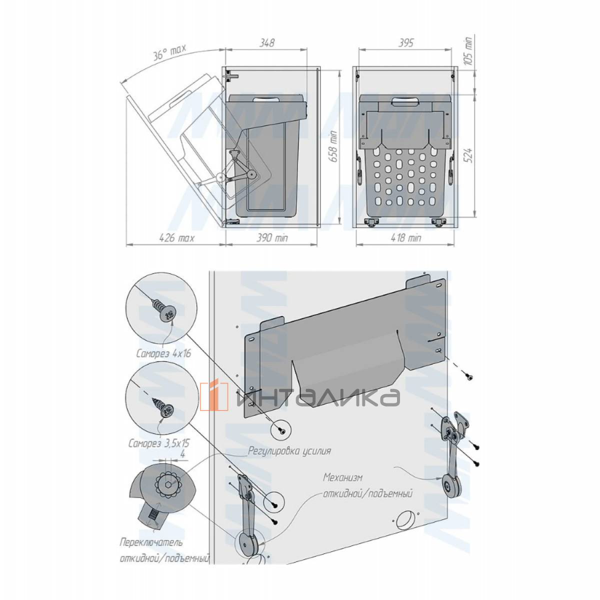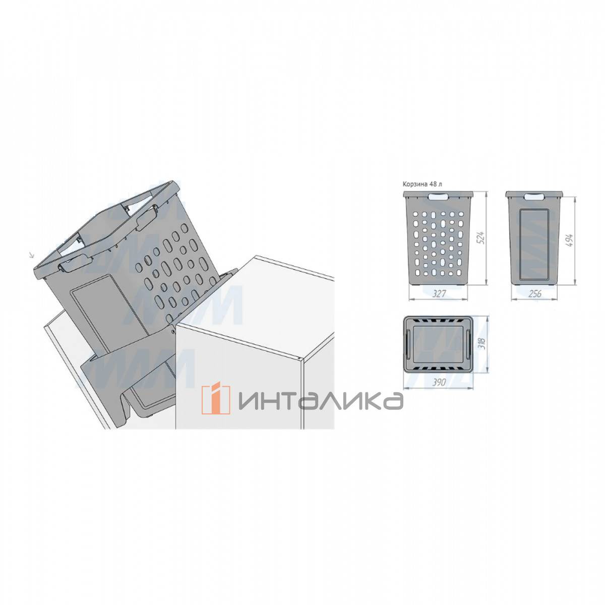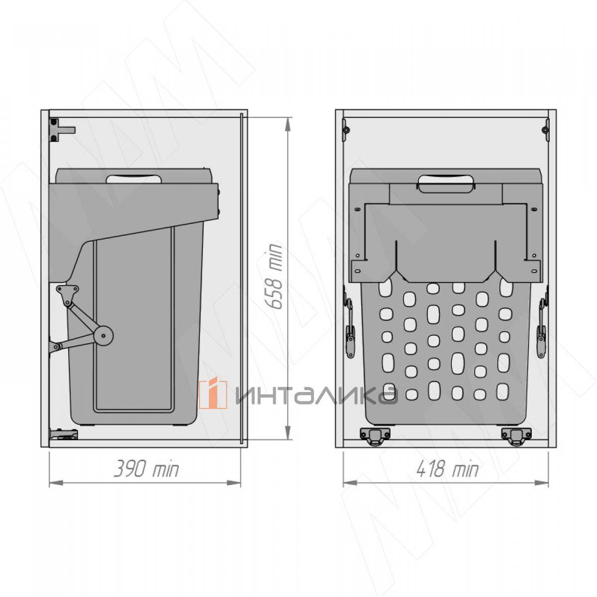 Комплектация: металлическая рама, корзина из ударопрочного пластика, откидные механизмы KLOCK, толкатели, крепёж (метизы)