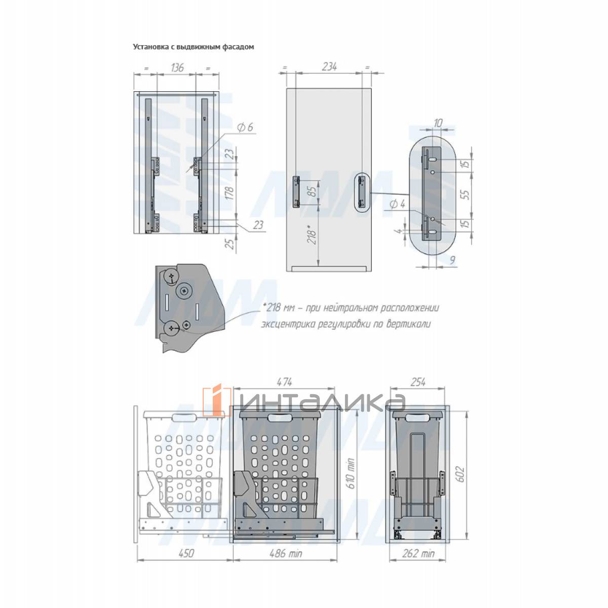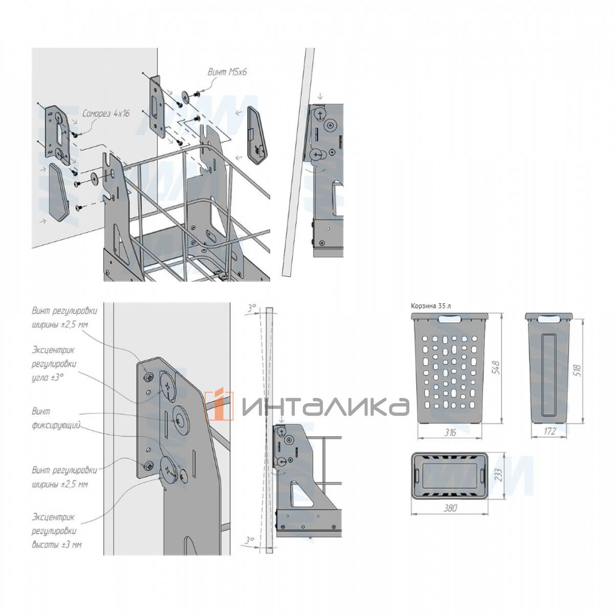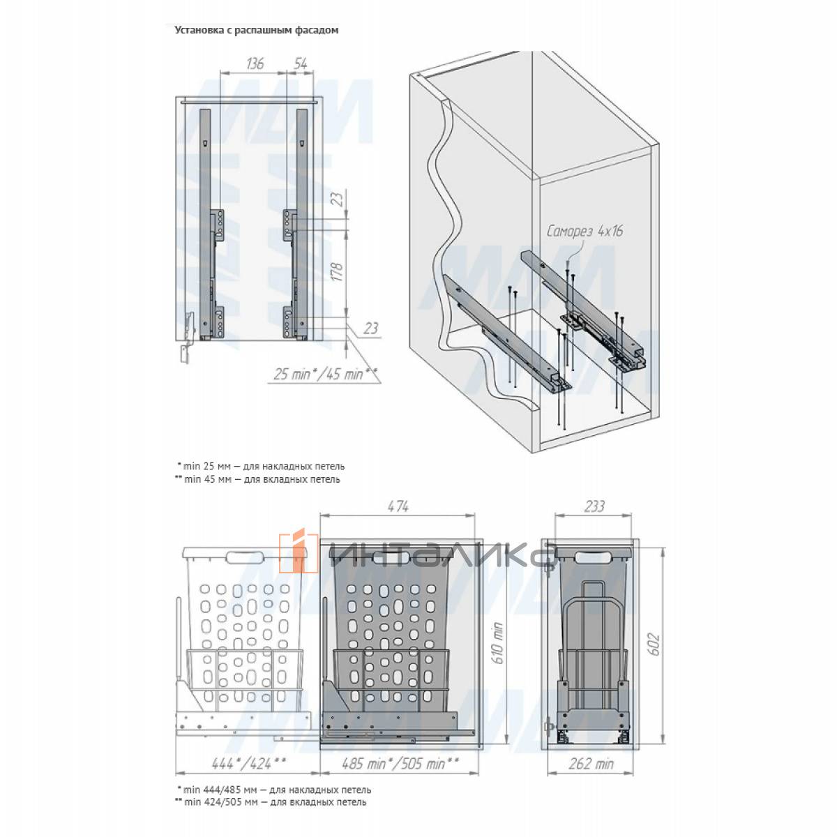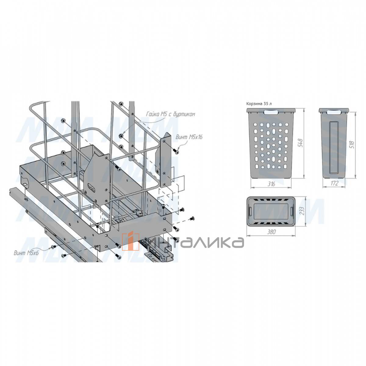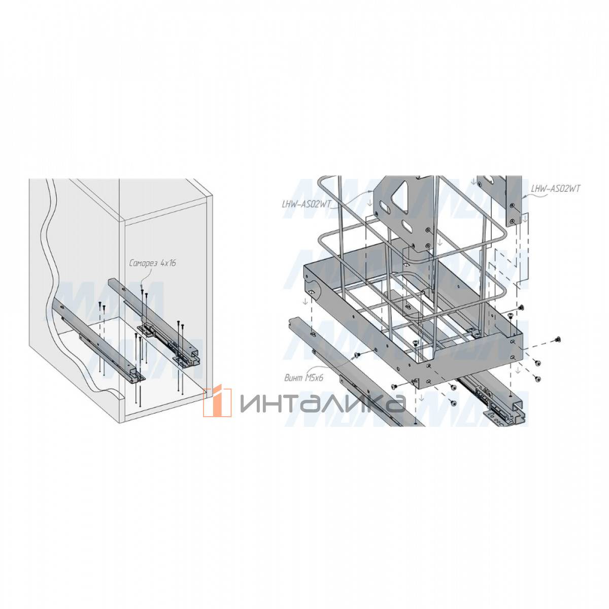 Комплектация: рама в сборе - 1 шт., направляющие - 1 компл., ручка - 1 компл., корзина - 1 шт., установочный крепёж для рамы -1 кпл.