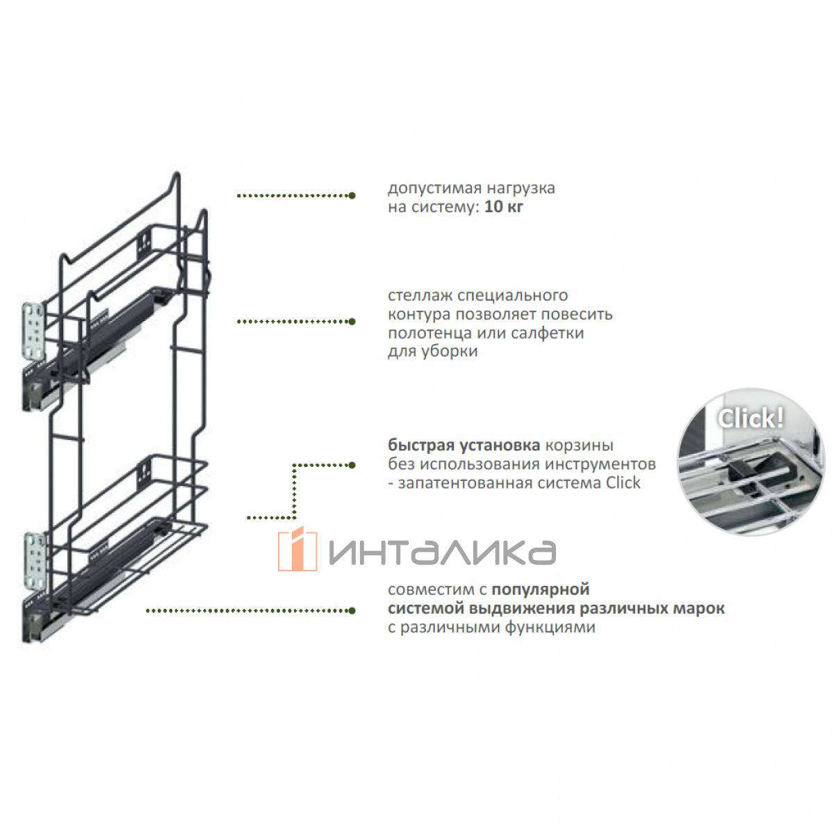 Корзина Cargo mini Linia Variant MULTI - выдвижной элемент для нижних шкафов в корпус 150 мм, с боковым креплением