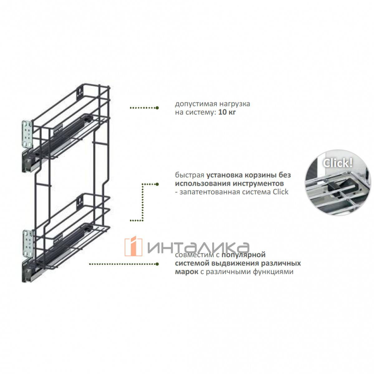 Корзина Cargo mini Linia Variant MULTI - выдвижной элемент для нижних шкафов в корпус 200 мм, с боковым креплением