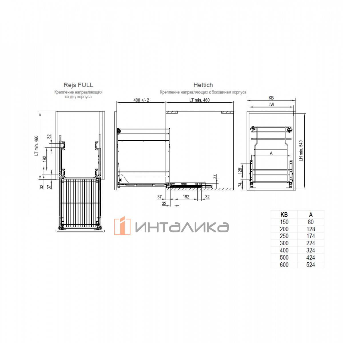 Примечание: корзина комплектуется полноразмерным шаблоном с установочными размерами. Направляющие в комплект не входят, приобретаются отдельно