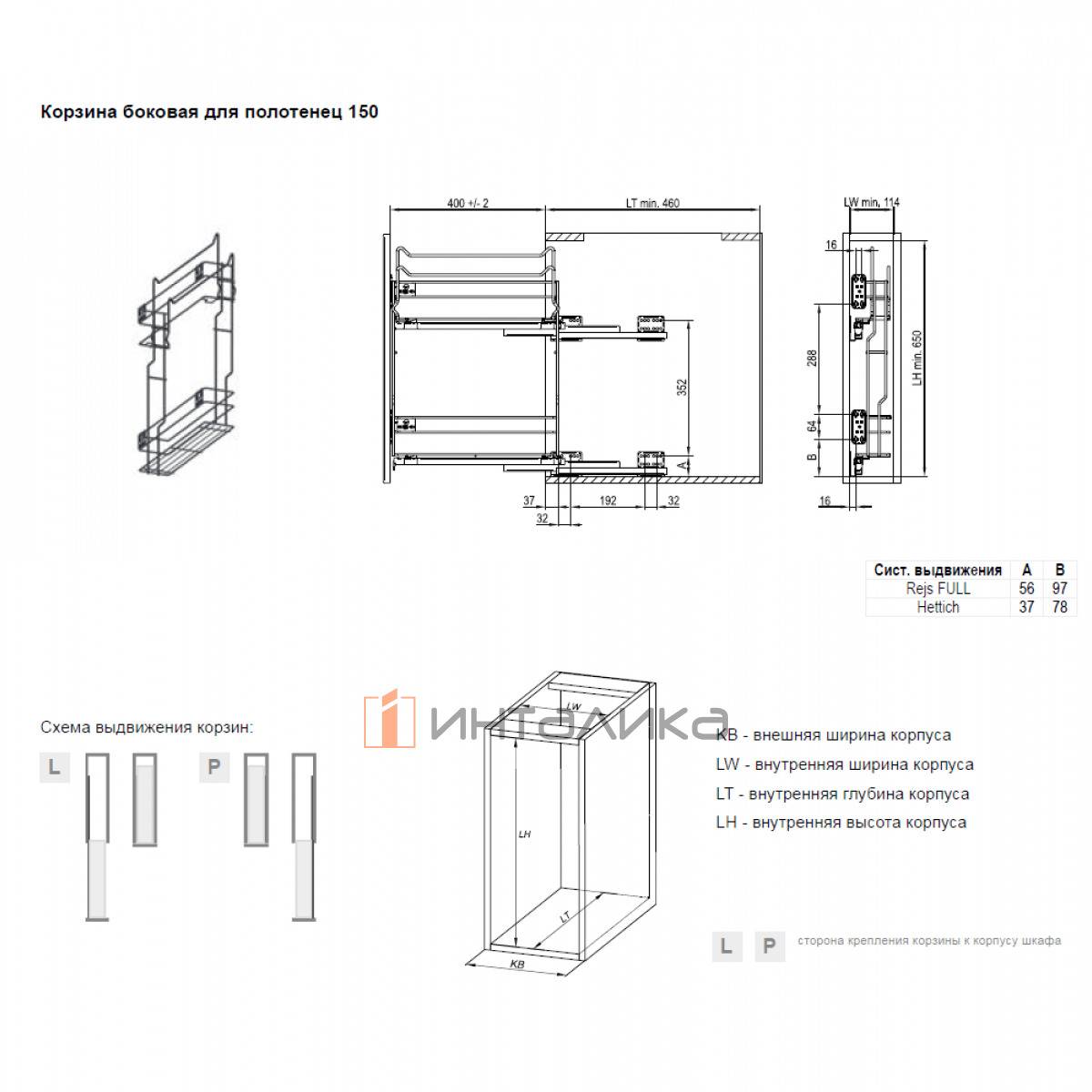 Набор REJS Cargo mini Variant MULTI для нижних шкафов в корпус 150 мм, с боковым креплением