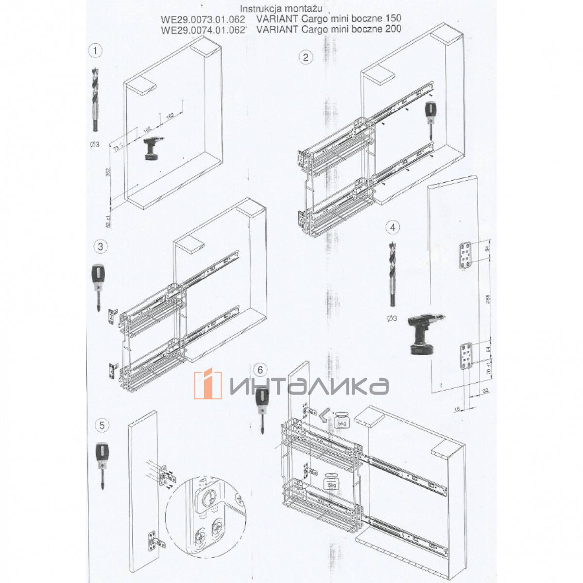 Набор REJS Cargo mini Variant MULTI для нижних шкафов в корпус 250 мм, с боковым креплением