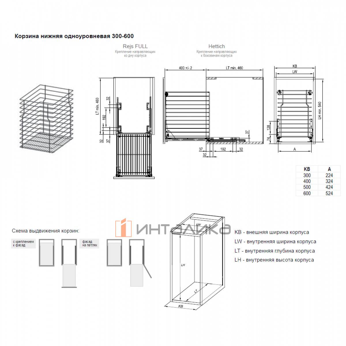 Набор REJS Cargo mini Variant MULTI для нижних шкафов в корпус 300 мм, с нижним креплением