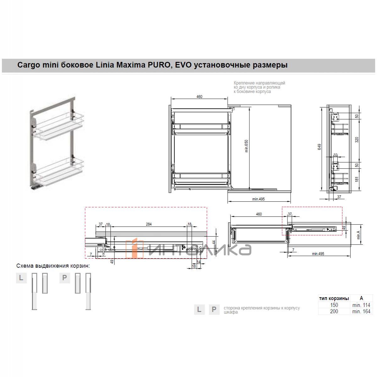 Двухуровневая система REJS Cargo mini Maxima Puro для нижних шкафов в корпус 150 мм, с боковым креплением
