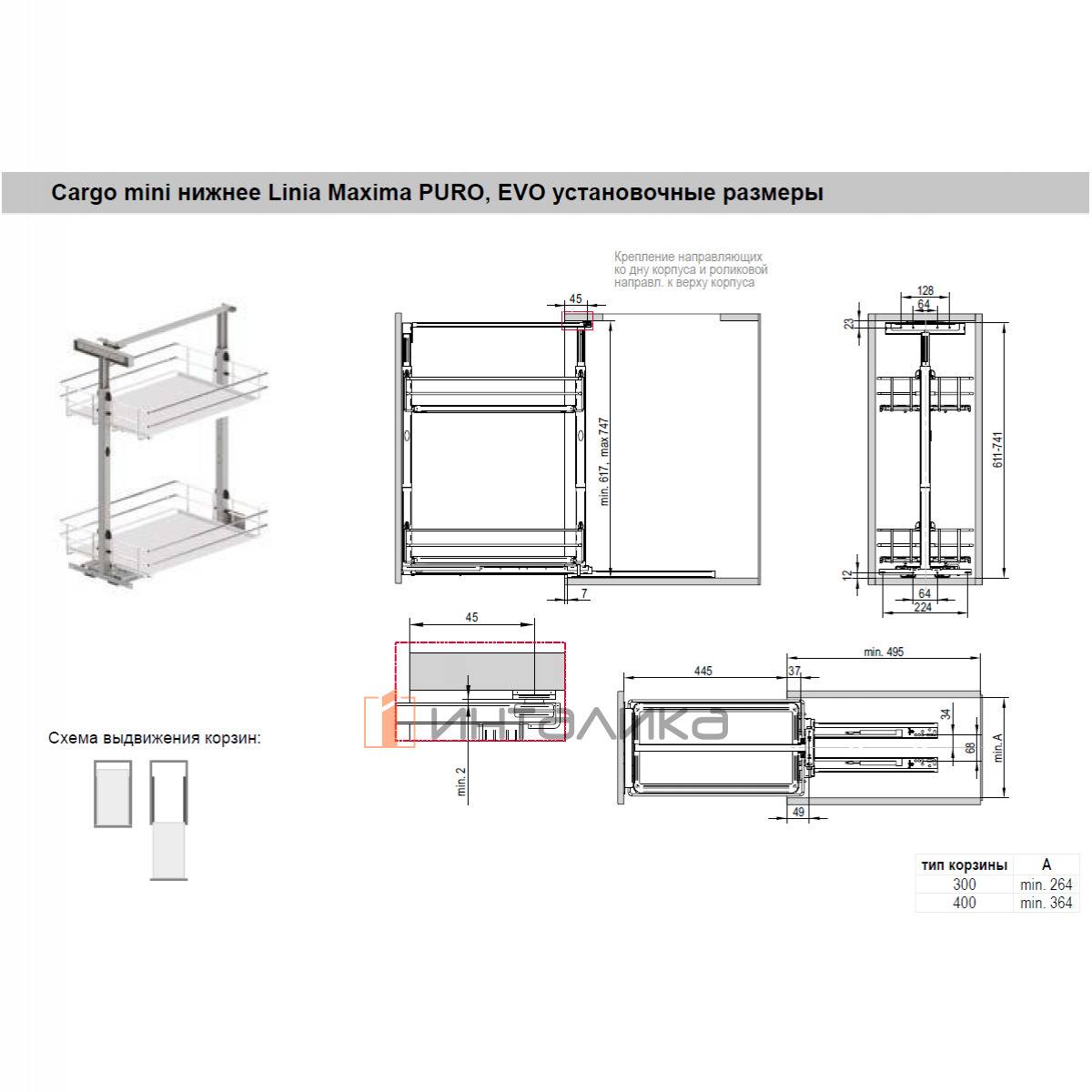 Двухуровневая система REJS Cargo mini Maxima EVO для нижних шкафов в корпус 300 мм, с нижним креплением