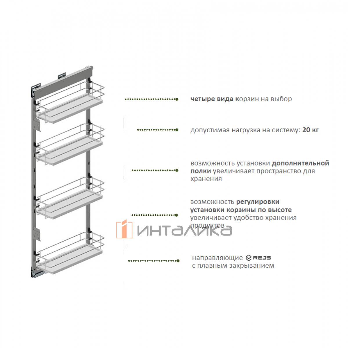 Четырехъярусная система REJS Cargo midi Maxima EVO для высоких шкафов в корпус 200 мм, с боковым креплением