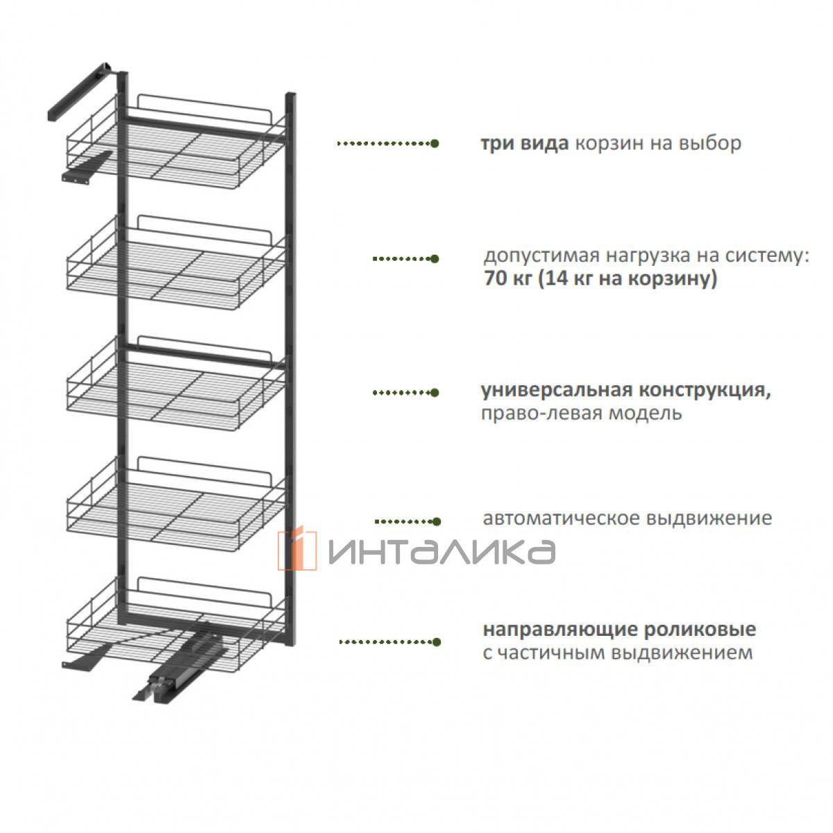 Допустимая нагрузка на систему - 70 кг, на одну корзину - 14 кг