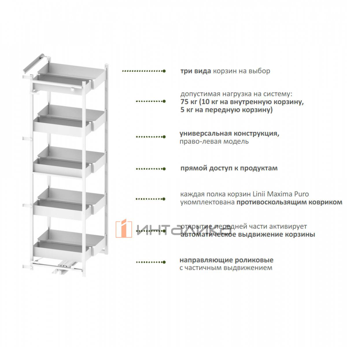 Пятиярусная поворотная колонна REJS Cargo maxi Space Duo Maxima Puro для высоких шкафов в корпус 600 мм, с нижним креплением