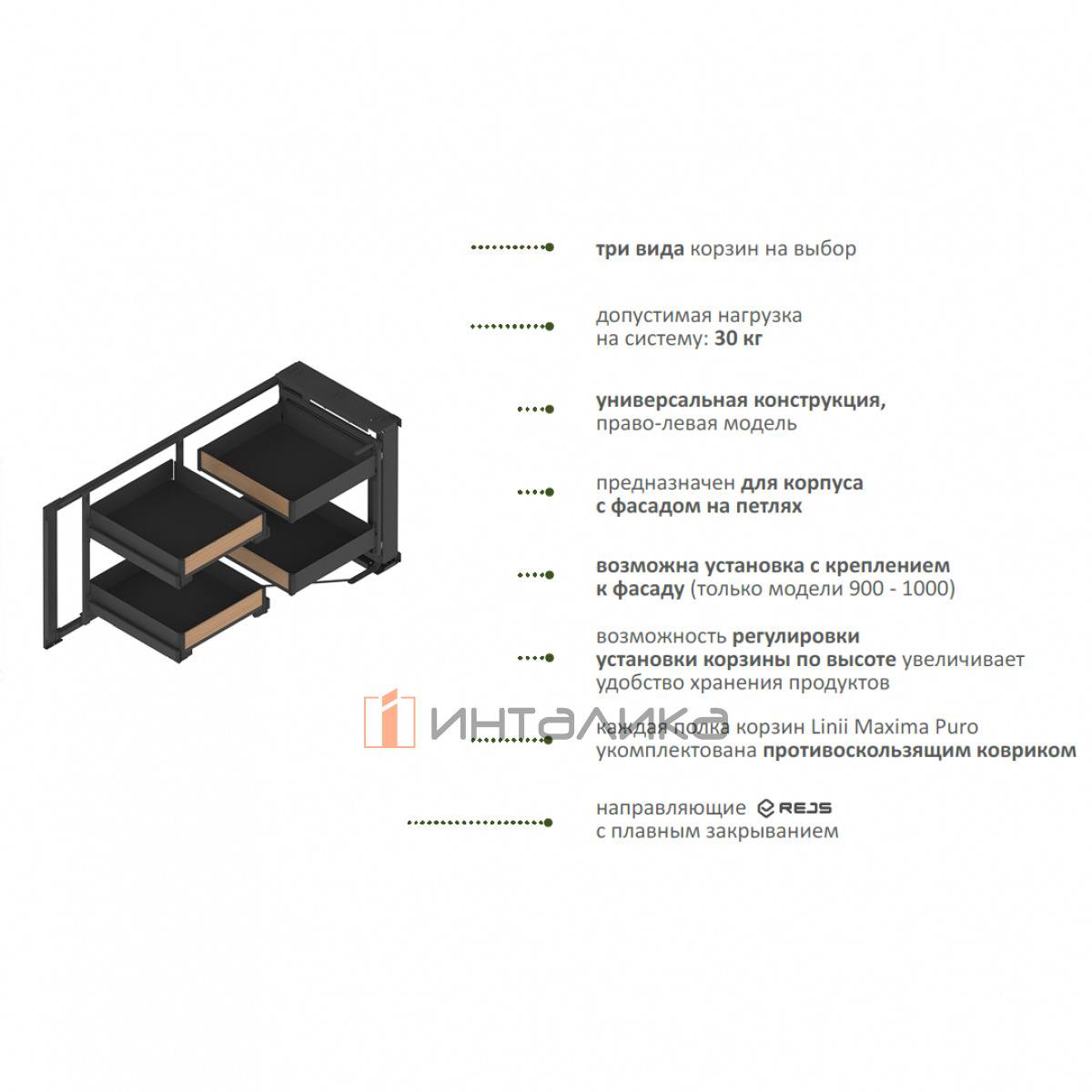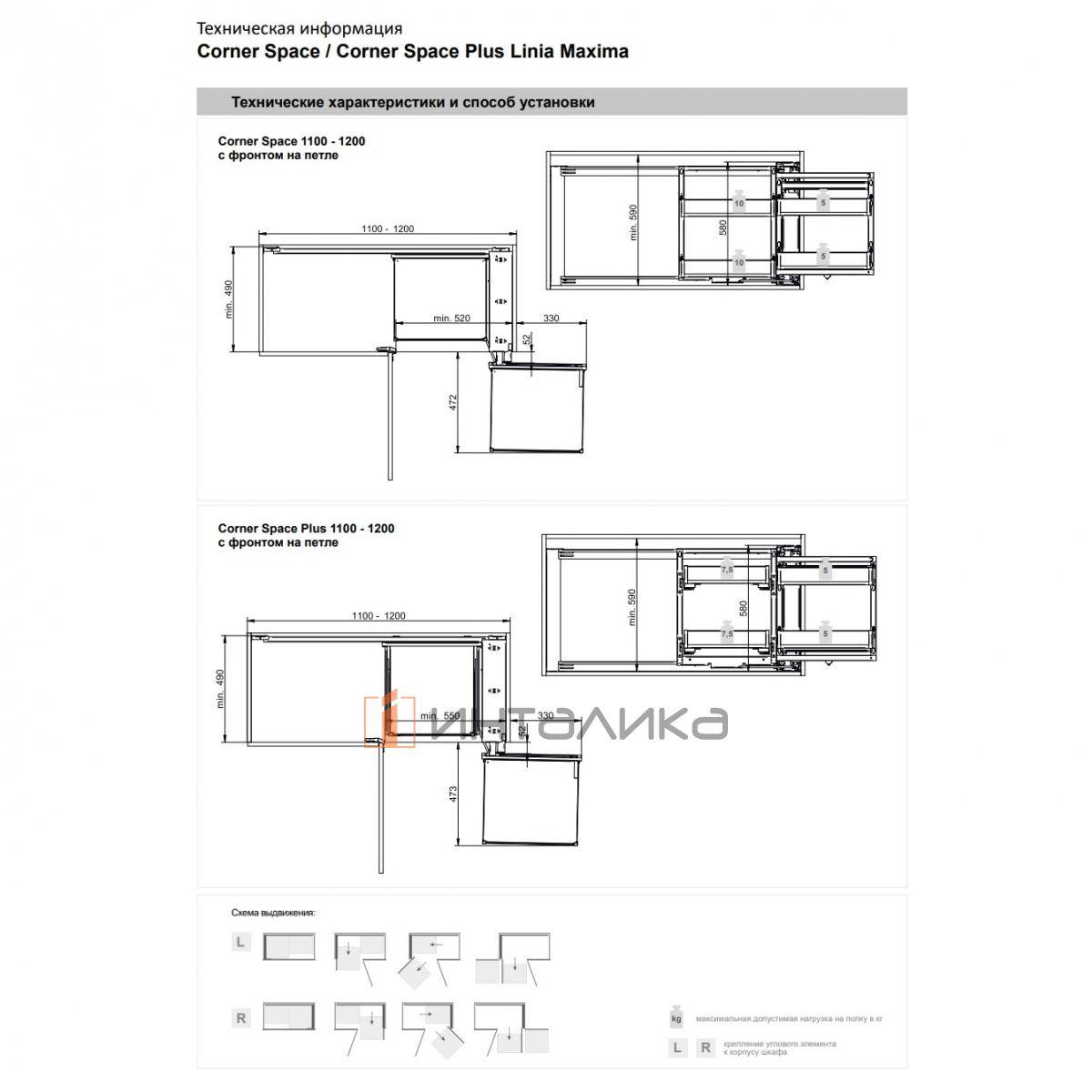 Угловая система REJS Space Plus Linia Maxima Puro в корпус 1100-1200 мм, в шкаф с распашным фасадом