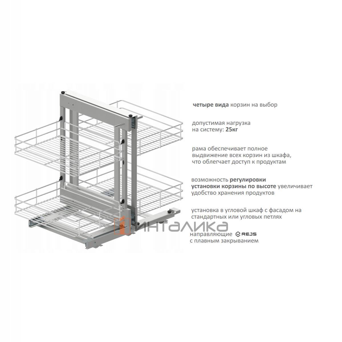 Допустимая нагрузка на систему - 25 кг
