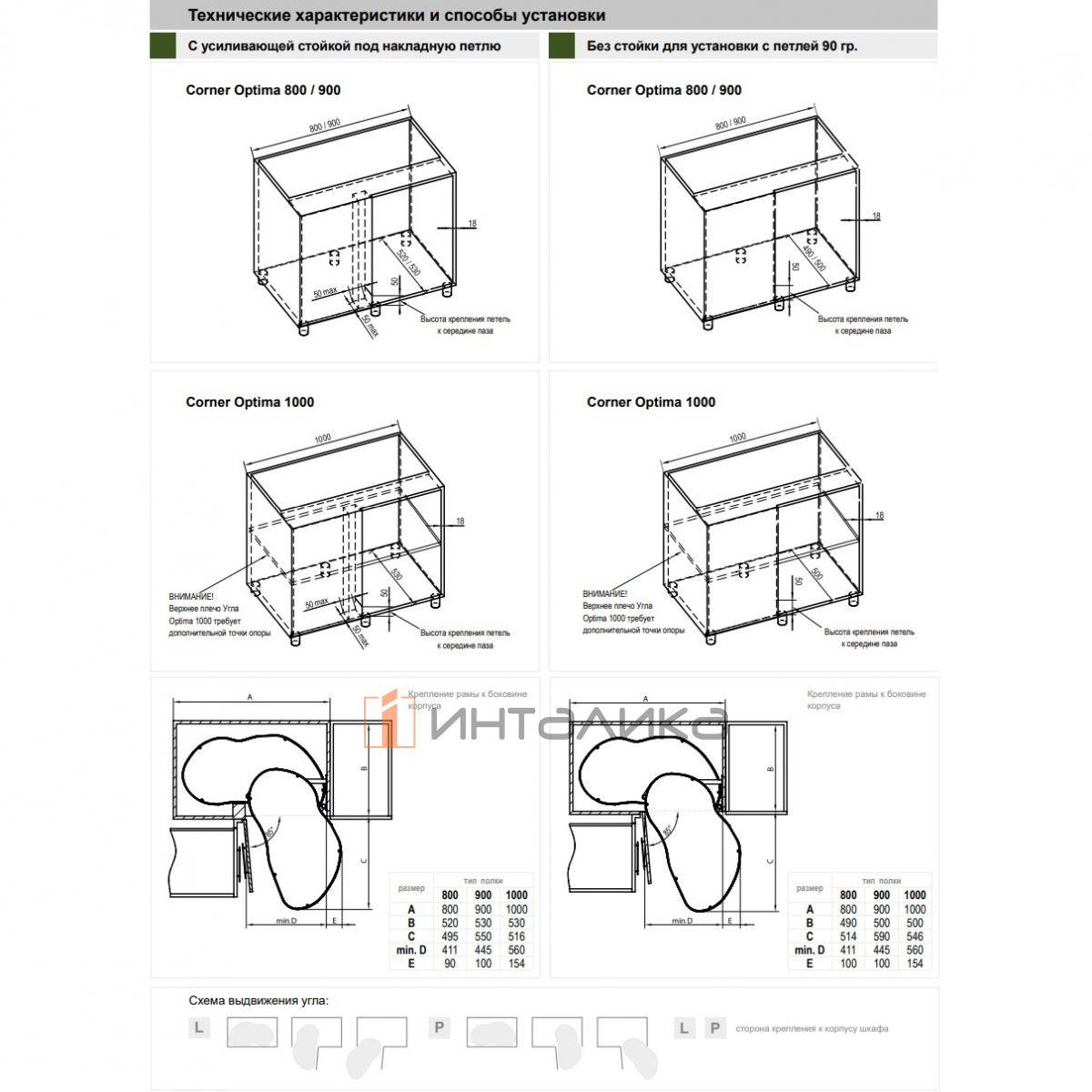 Угловая система REJS Optima Ergo в корпус 1000 мм, в шкаф с распашным фасадом