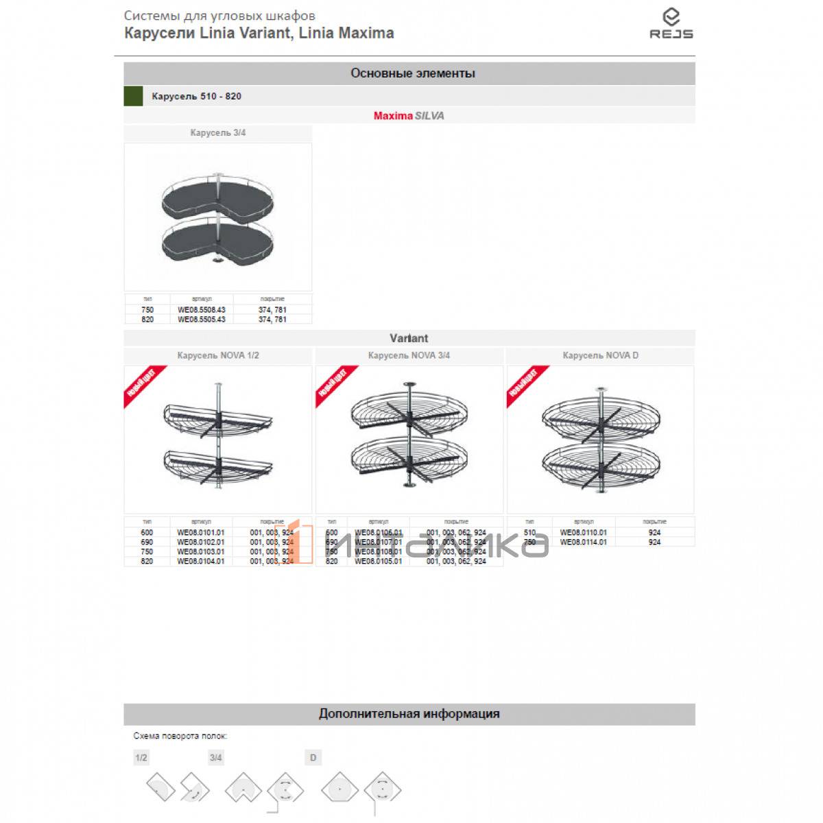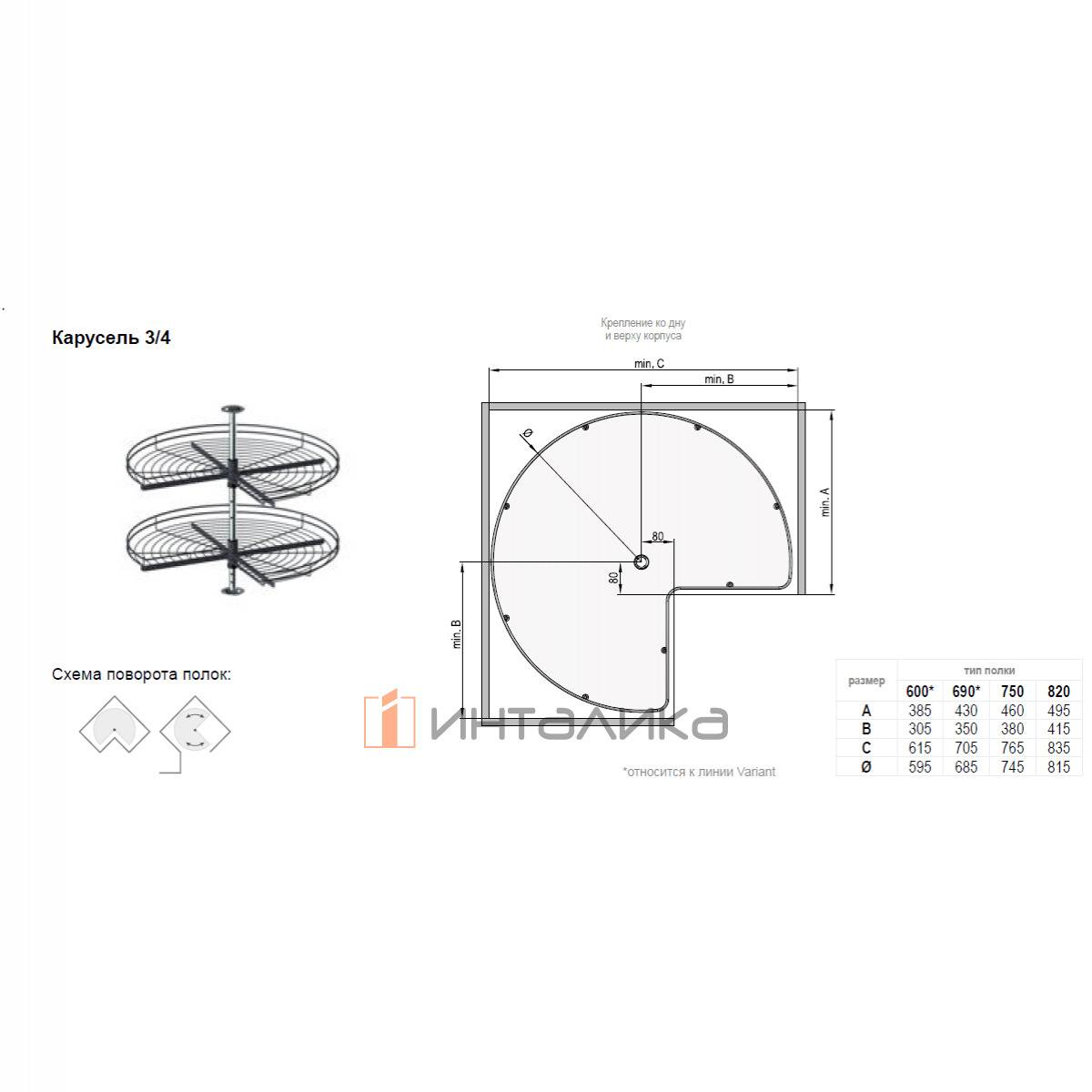 Карусель REJS Optima Nova 3/4, в шкаф с распашным фасадом