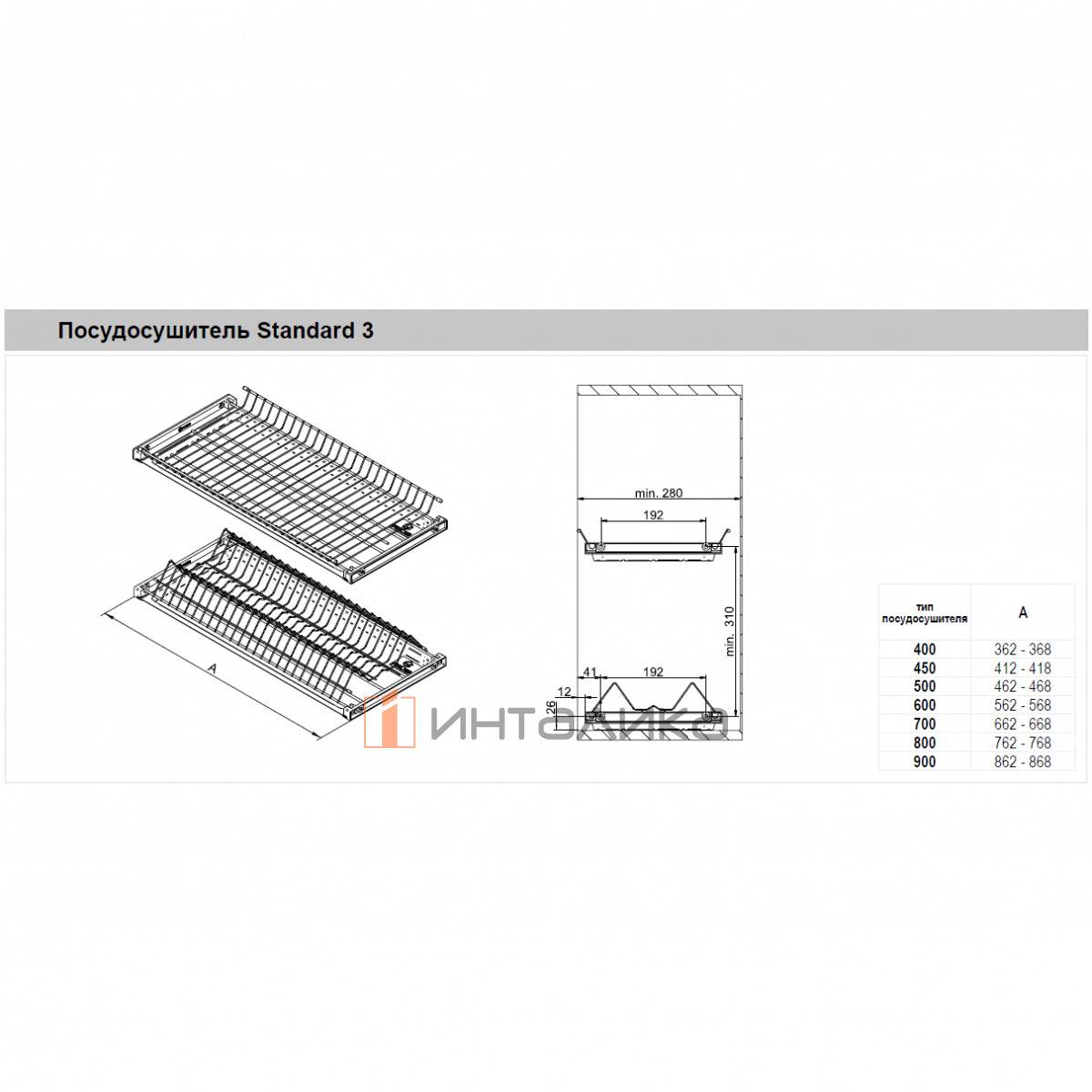 Двухуровневый посудосушитель REJS Standard 3 в верхний корпус 900 мм