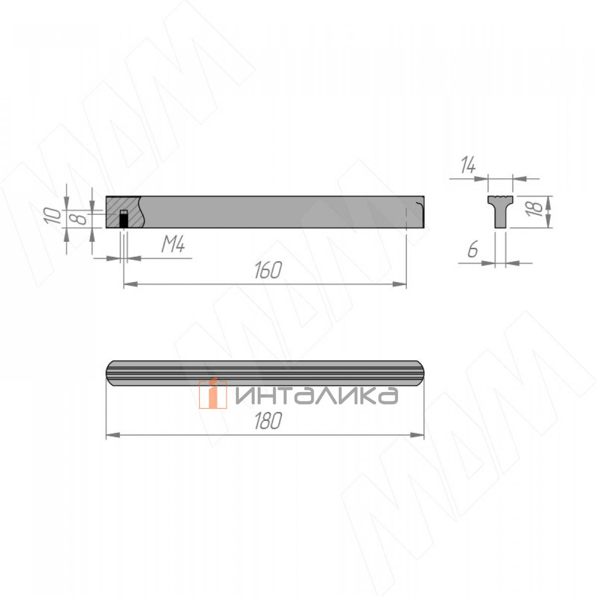 Профиль-ручка 160мм (L=180мм) черный матовый (краска RAL9005), PH.RU32.180.BL