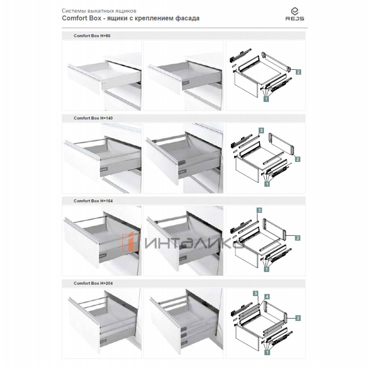 Комплект стандартного фасадного ящика Rejs Comfort Box полного выдвижения
